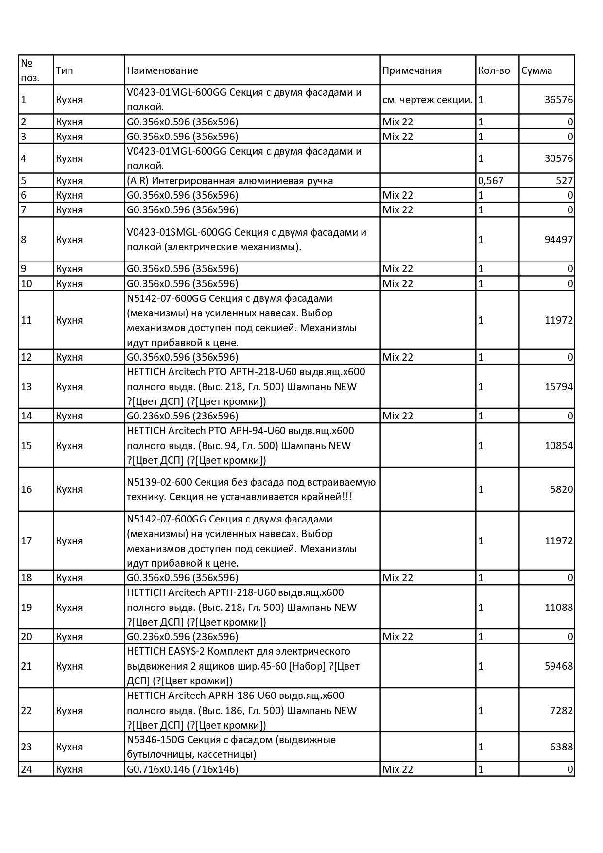 Размер Кухни (зона вар.панели)В/Ш/Г: 2390/1880/600 мм.