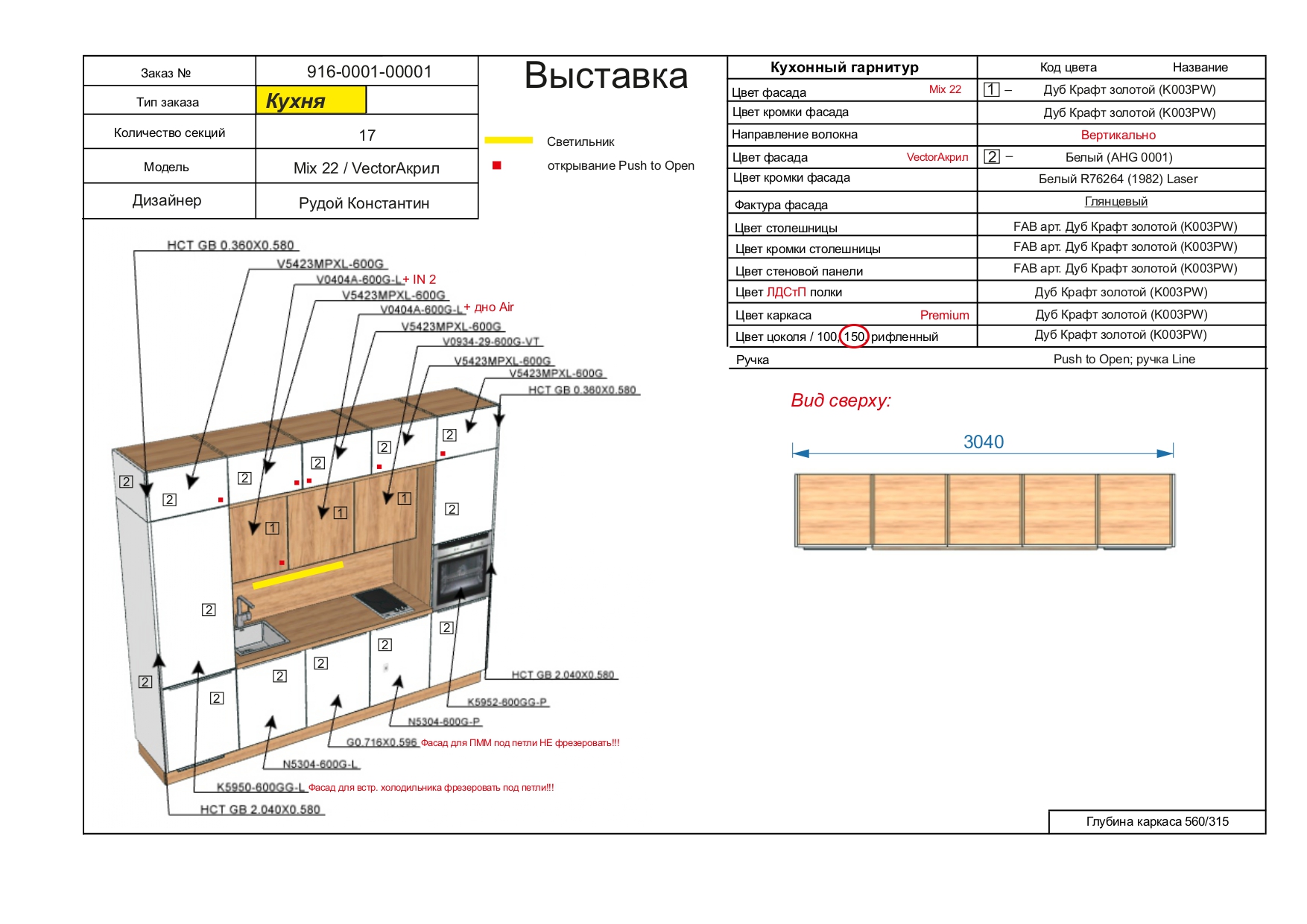 Размер Кухни: В/Ш/Г 2550/3040/600 мм.