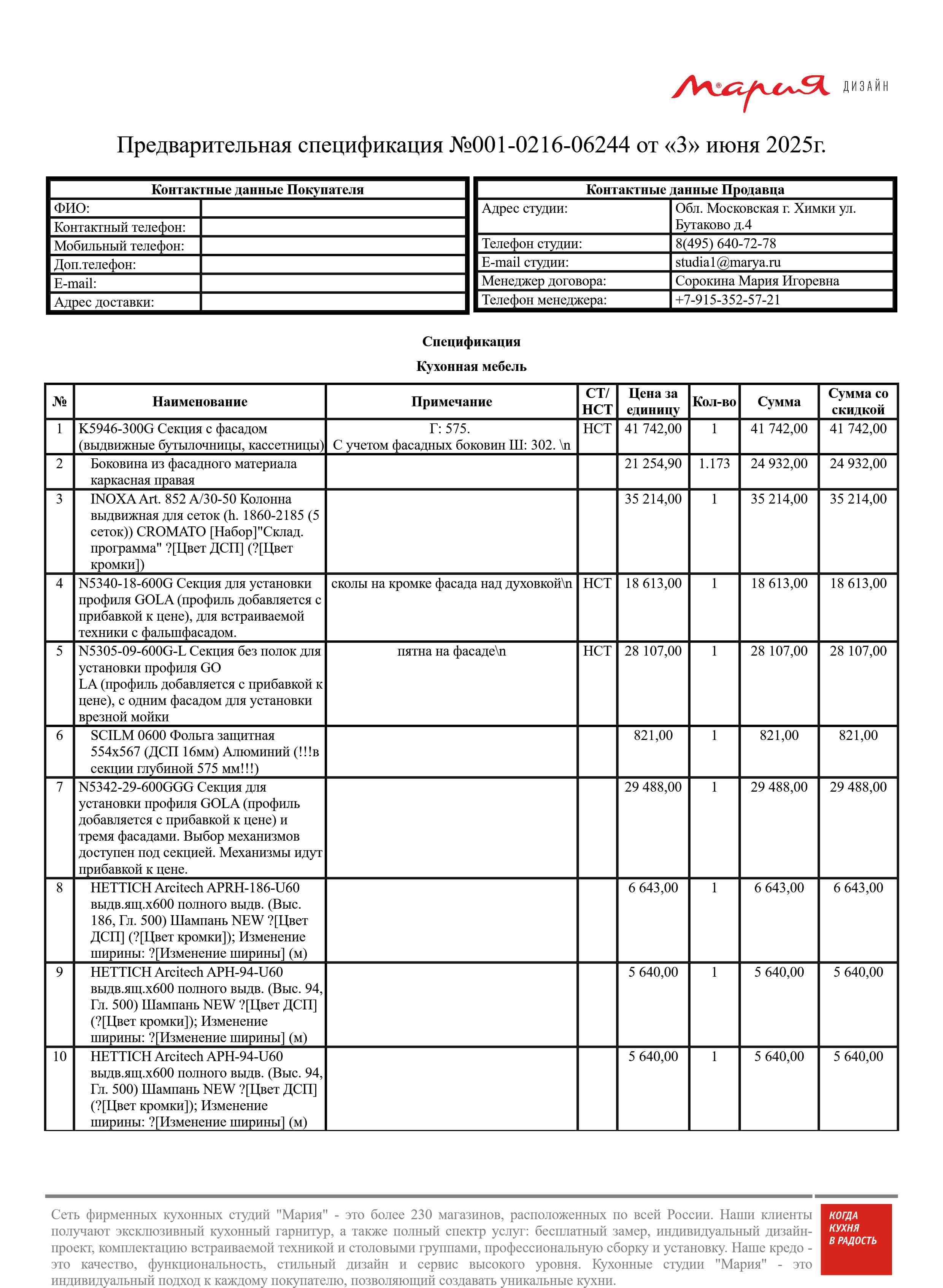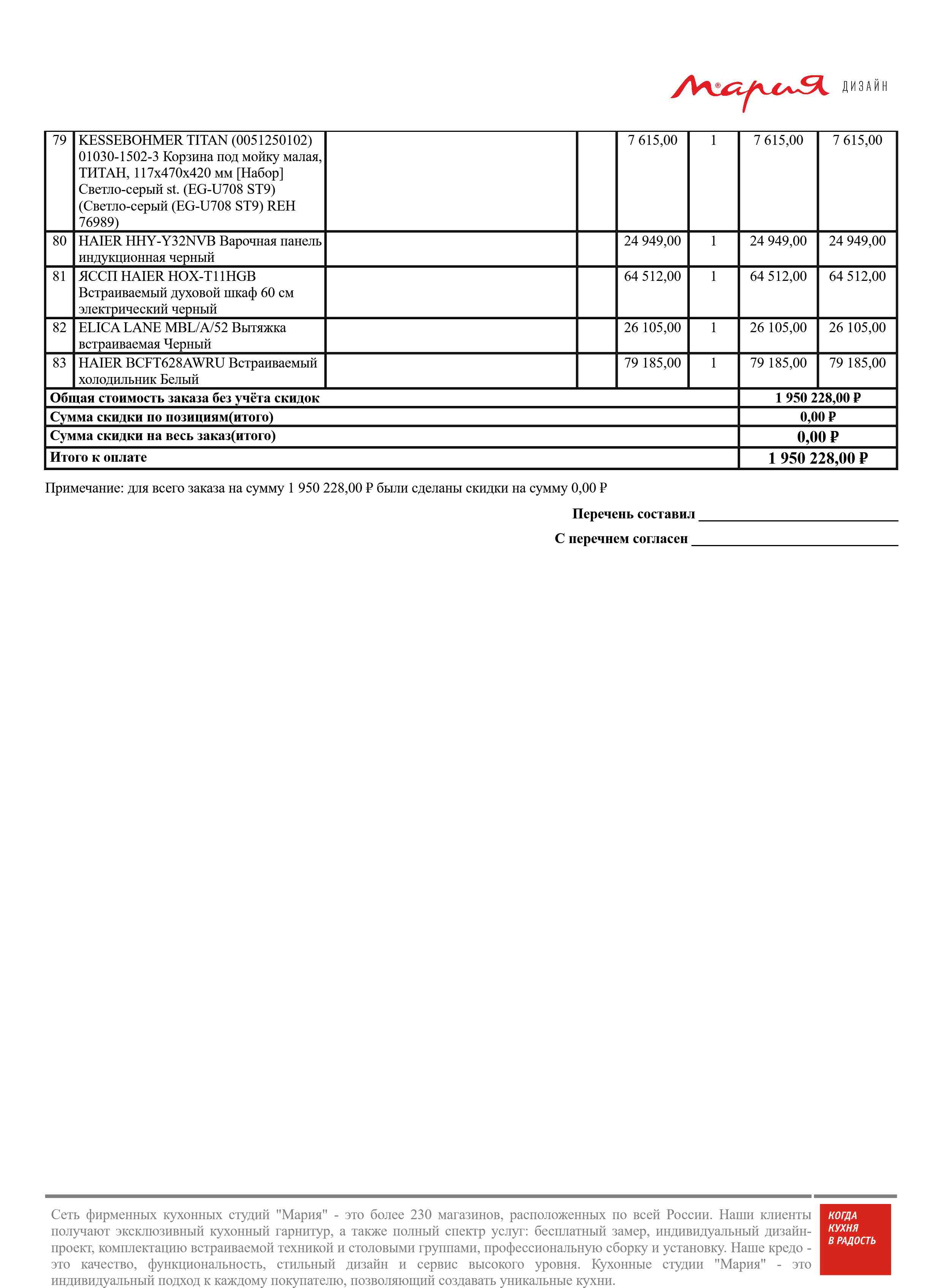 Стоимость данной кухни складывается из: