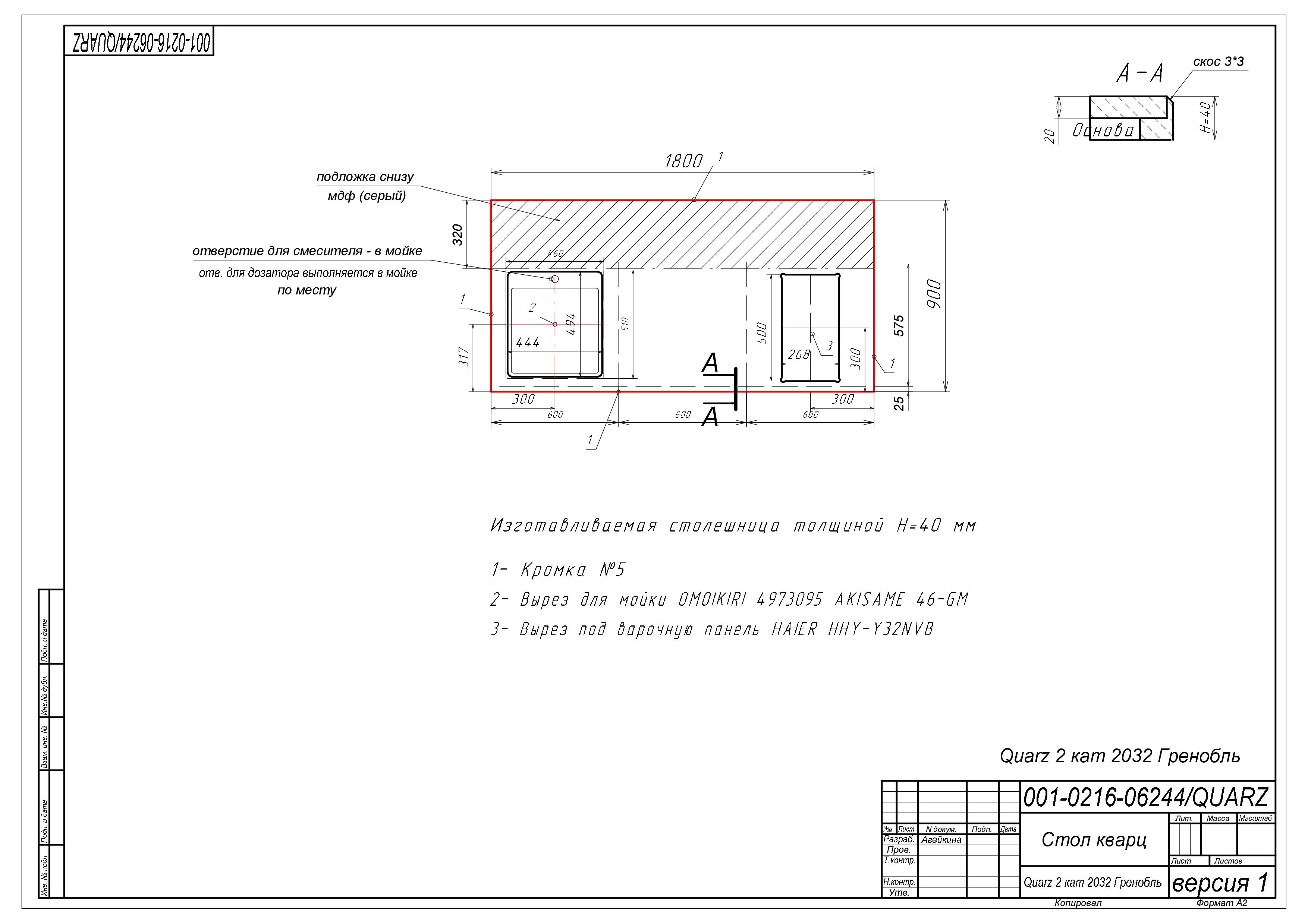 При покупке данного КГ, необходимо будет оформить платный дозаказ комплекта для склейки столешницы из искусственного камня, через менеджера студии Мария (который свяжется с вами сразу после приобретения КГ).