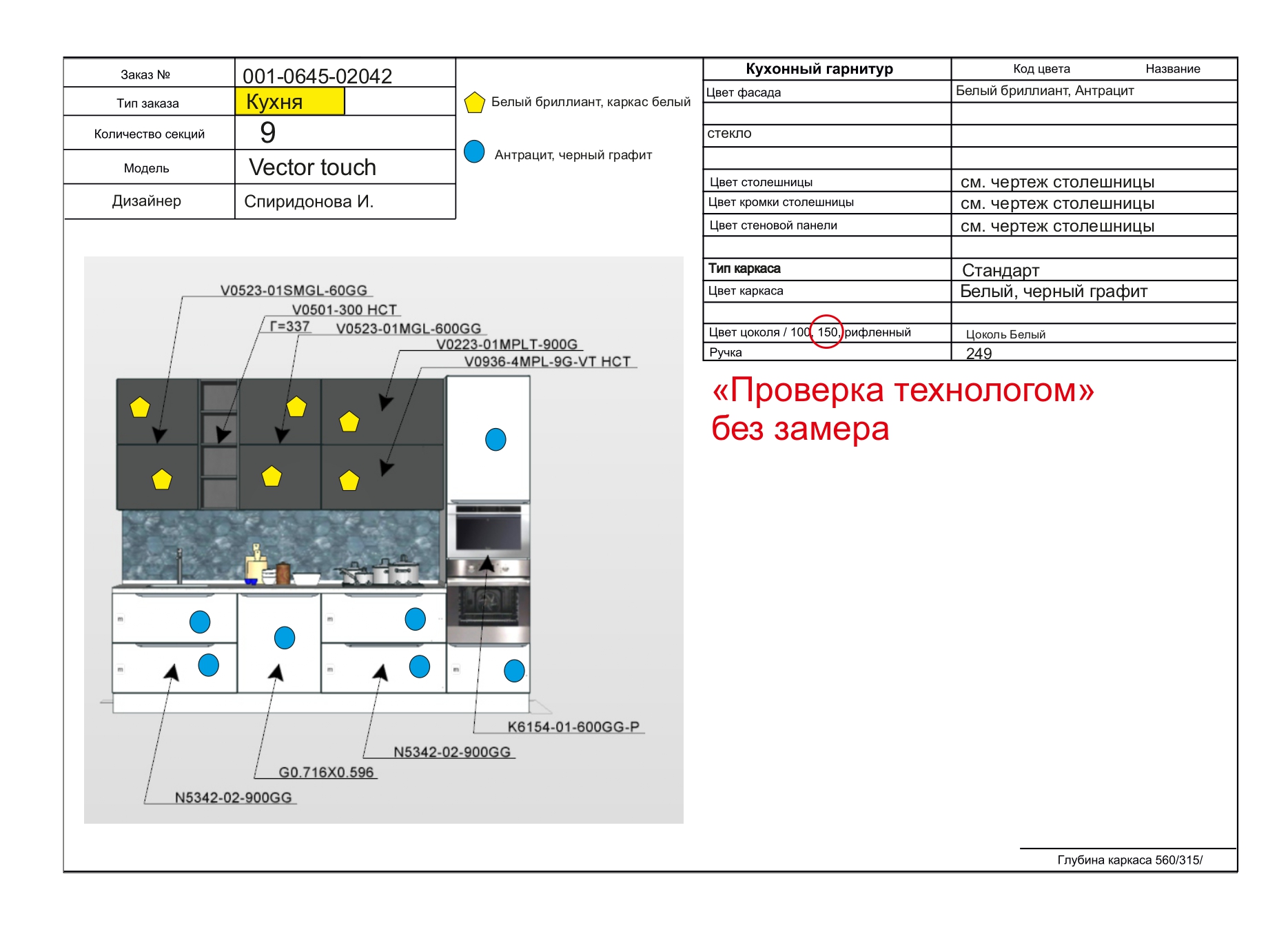 фасады, выполненные из МДФ 20 мм. Покрытие: лицевая сторона — акриловый пластик, обратная сторона — белый ламинат, кромка ABS 1 мм.