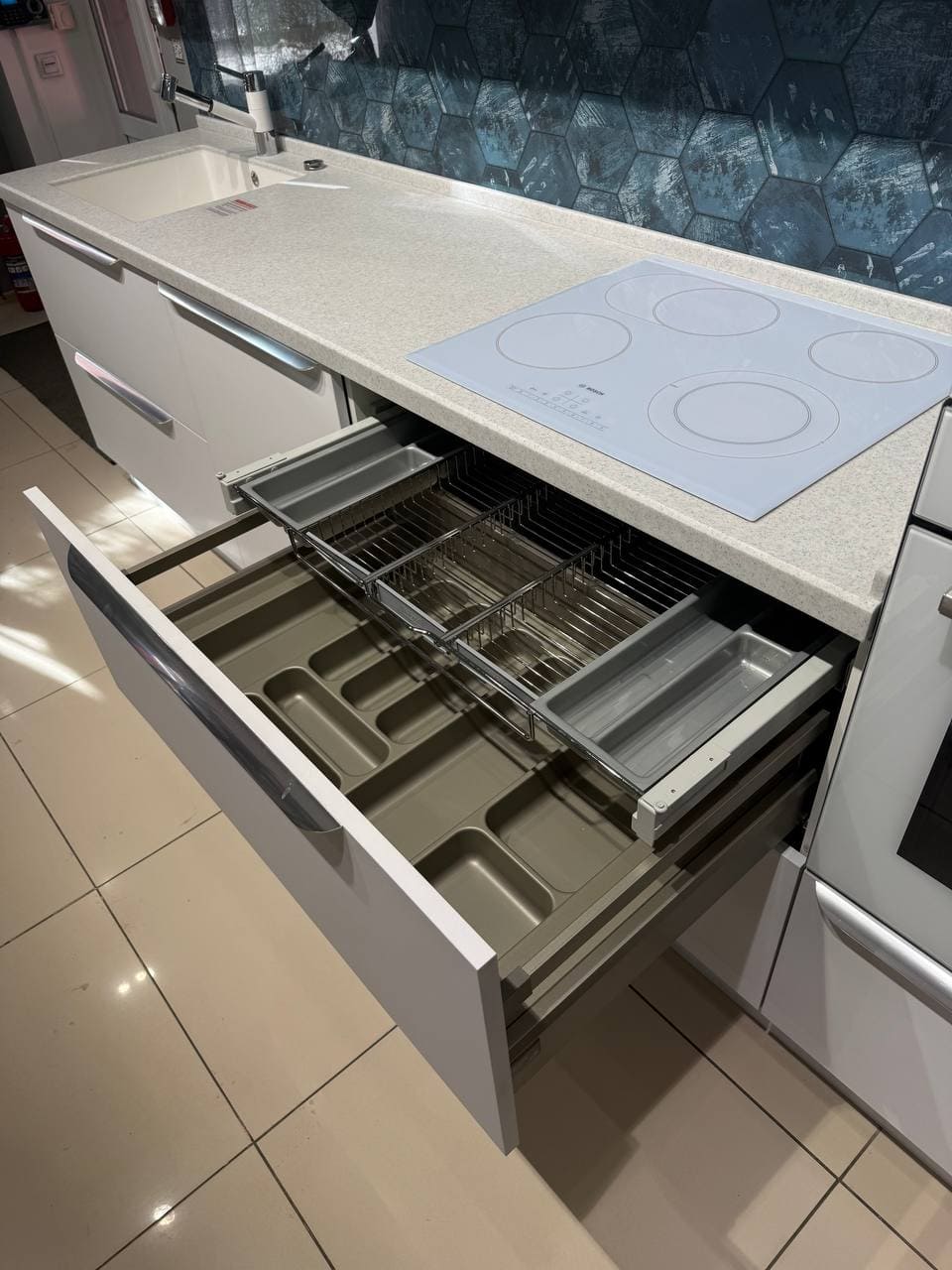 Внешний вид, описание дефектов: Могут присутствовать незначительные потертости, сколы, царапины. Аксессуары не входят в данный комплект кухонного гарнитура.
