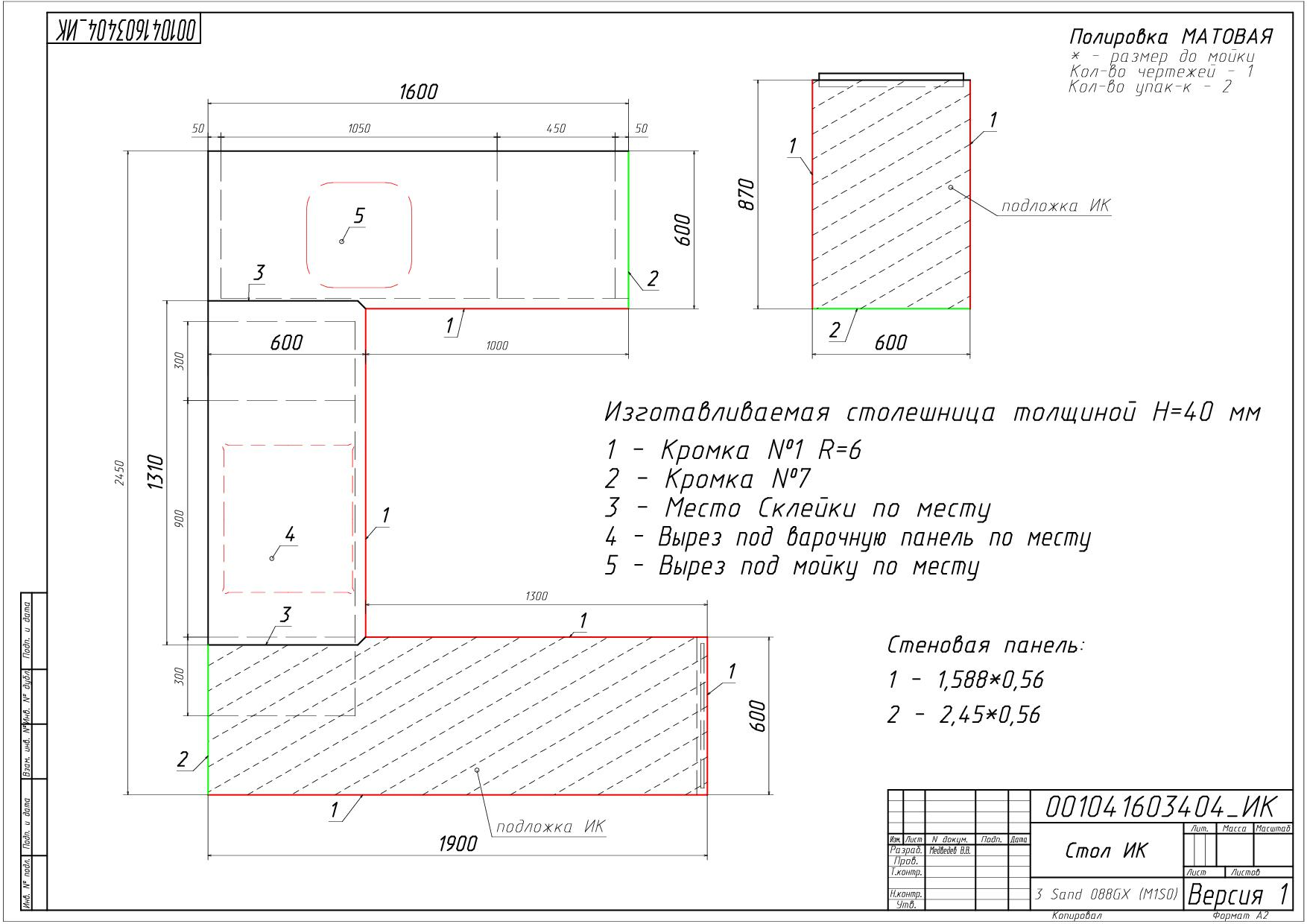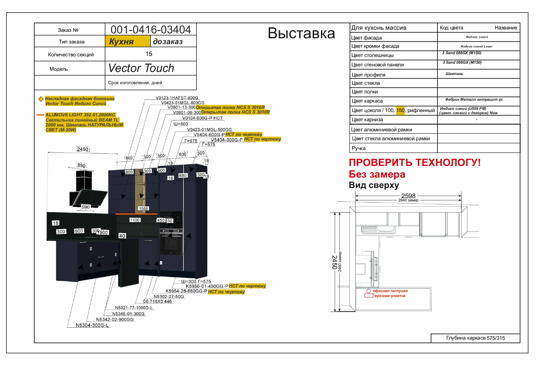 Размер Кухни слева направо: 1900/2450/2598 мм.
