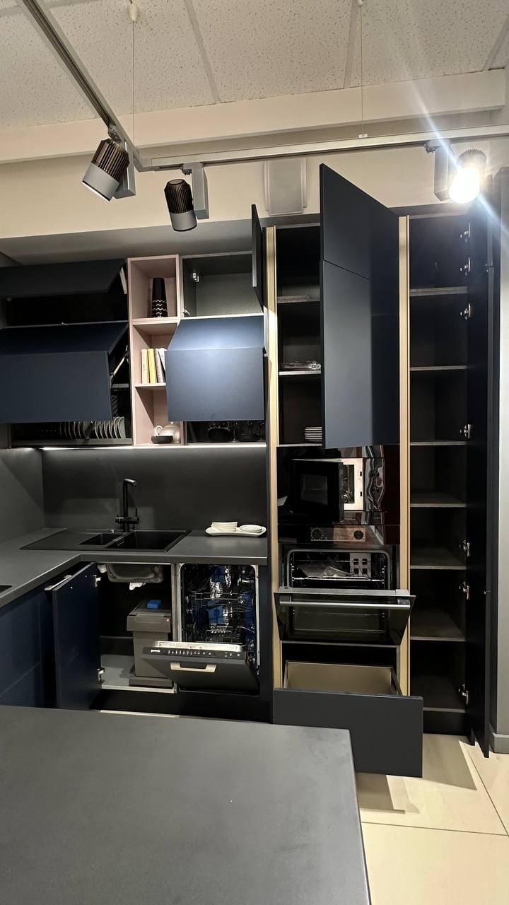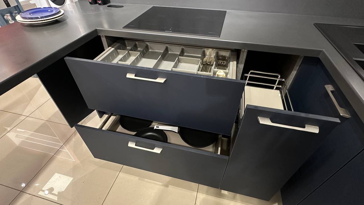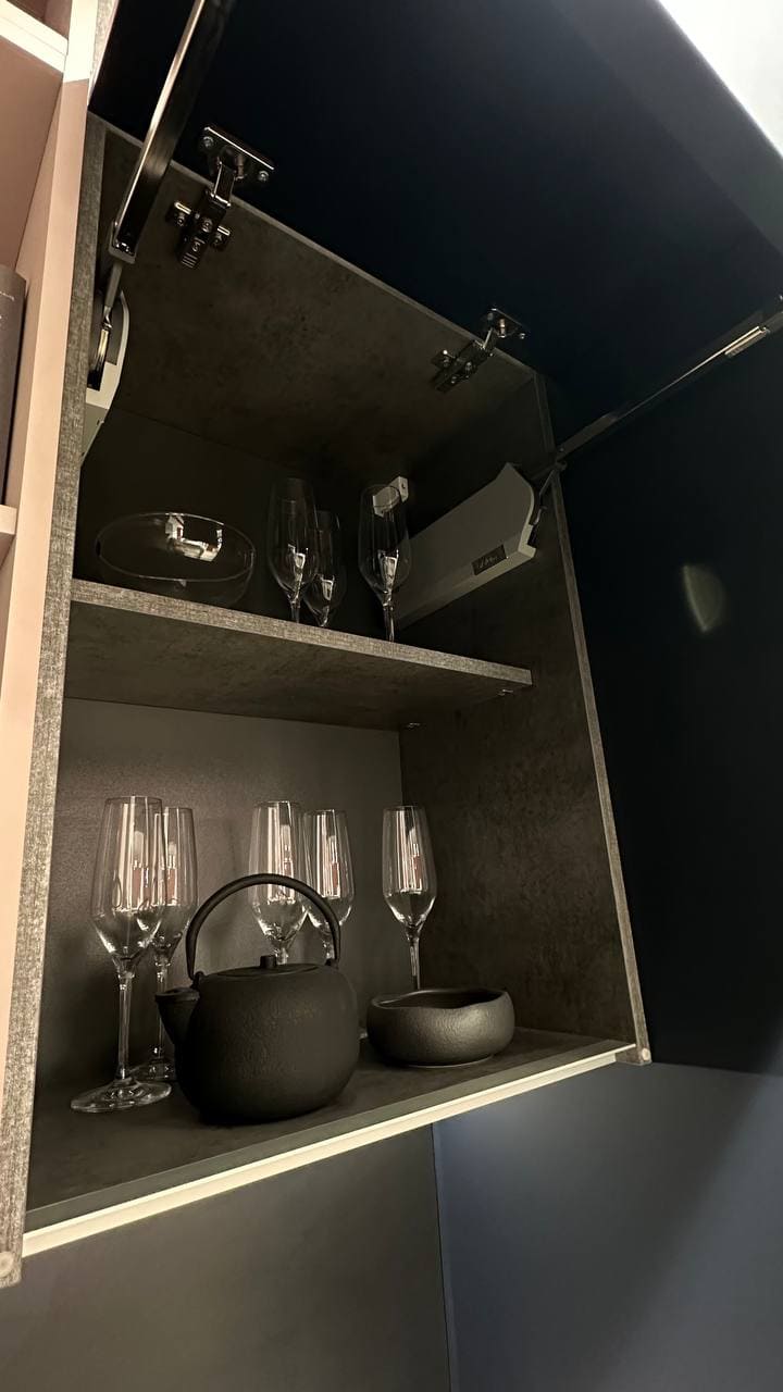 Гарнитур Vector, воплощающий стиль большого города, ультрамоден и бескомпромиссен в своем лаконичном великолепии. Четкие геометрические формы, открытые секции из фасадного материала, уникальные декоративные ящики, V-образные элементы декора создают аскетичный и решительный образ, излучающий ауру уверенности и особого магнетизма. Яркая индивидуальность кухонного гарнитура Vector рождается из сочетания элементов, объединенных единой направляющей идеей.