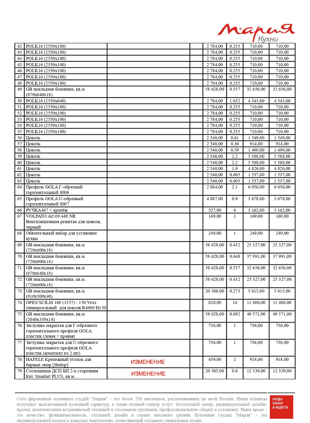 - секции, фасады, комплектующие – 1 256 637 р.