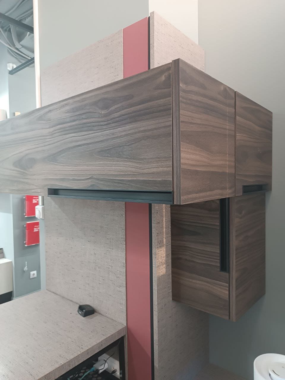 Особенности: модель Mix 22 включает в себя разнообразие декоративных фасадов: безопасные фасады с закалённым стеклом легко смотрятся в интерьере кухни, а глухие сборные фасады, соединенные между собой планками из фасадного материала Mix 22 и закромленные с четырех сторон, открывают дизайнерам возможность творчества. Также для совместной организации пространства кухни и гостиной в едином интерьерном решении разработана линейка оригинальных секций Mix Living.