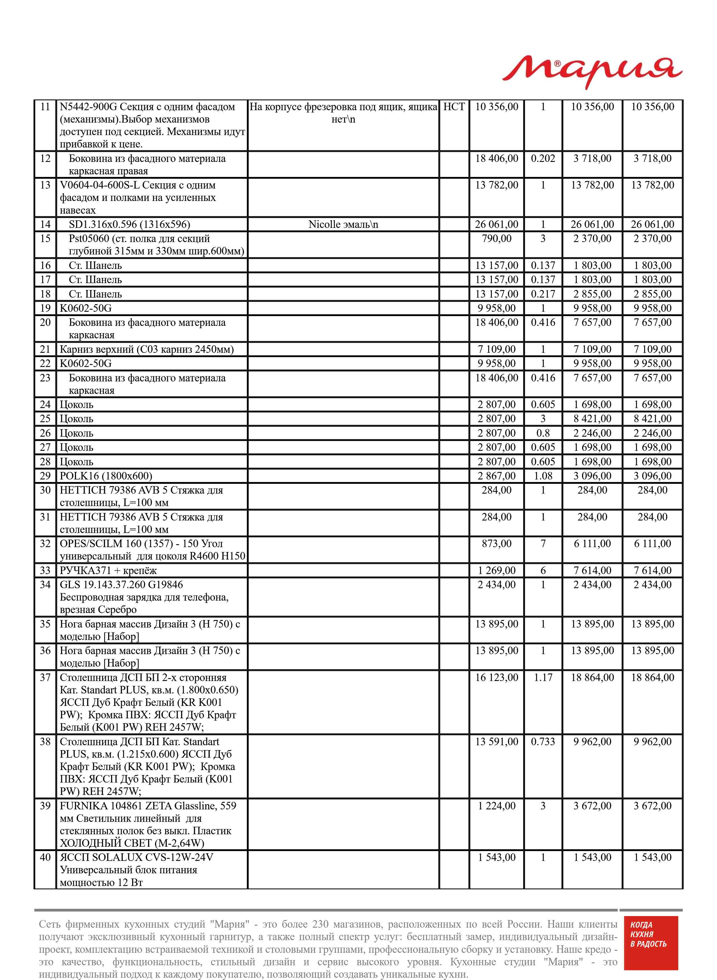 Стоимость данной кухни складывается из: