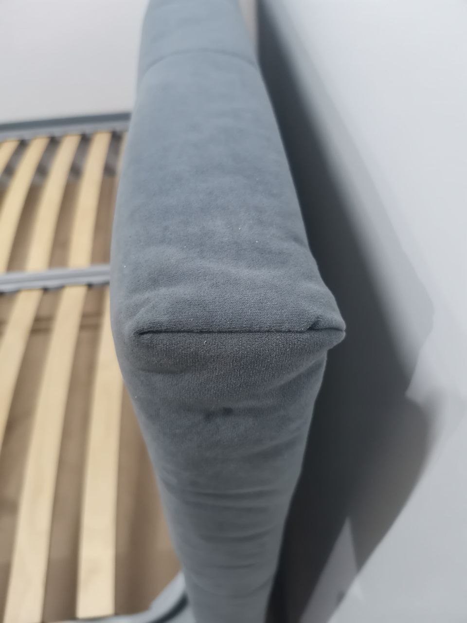 Простой геометрический узор, глубокие утяжки на изголовье, мягкость обивки делает изделие легким и воздушным на вид.