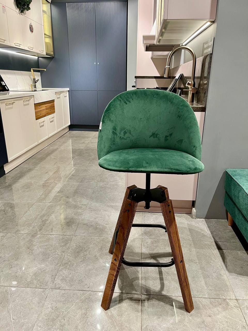 - Стул барный: (1 шт.) SHEFFILTON 181043 SHT-ST35-2/S93 микровелюр/дерево/металл лиственно-зеленый/браш.коричневый/черный