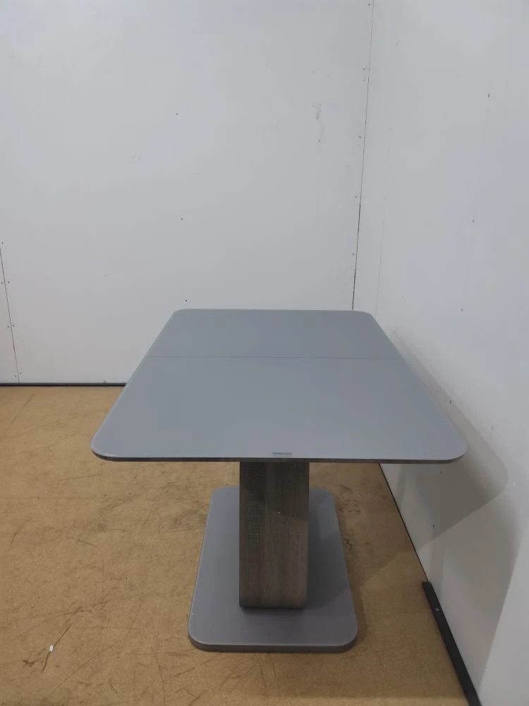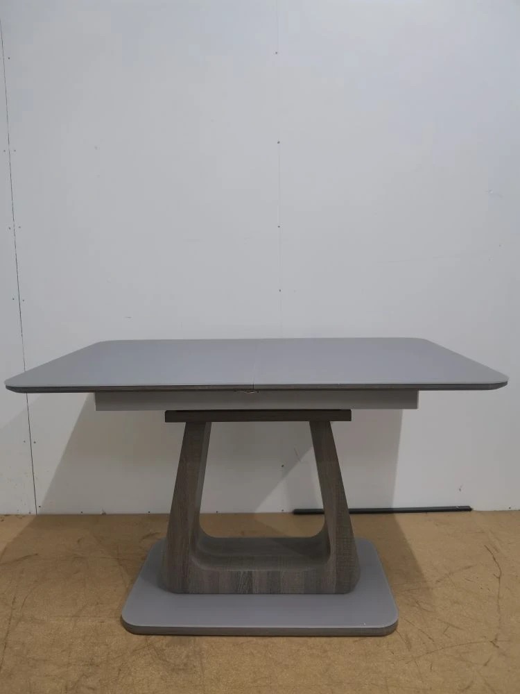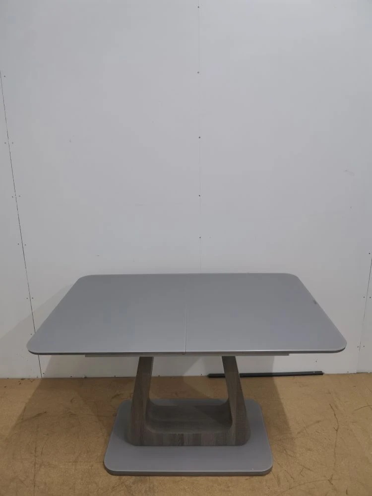 В данной модели красиво сочетаются оттенки серого. Столешница изготовлена из МДФ, боковые части из серого матового стекла (толщиной 4 мм), центральная вставка с меламиновым покрытием. Основание из МДФ, также с серым матовым стеклом и меламиновым покрытием.
