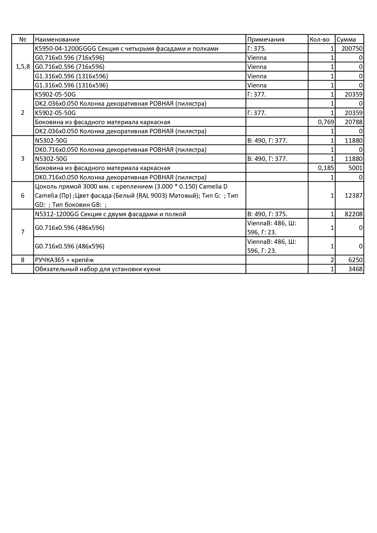 - Обязательный набор для установки (фурнитура)