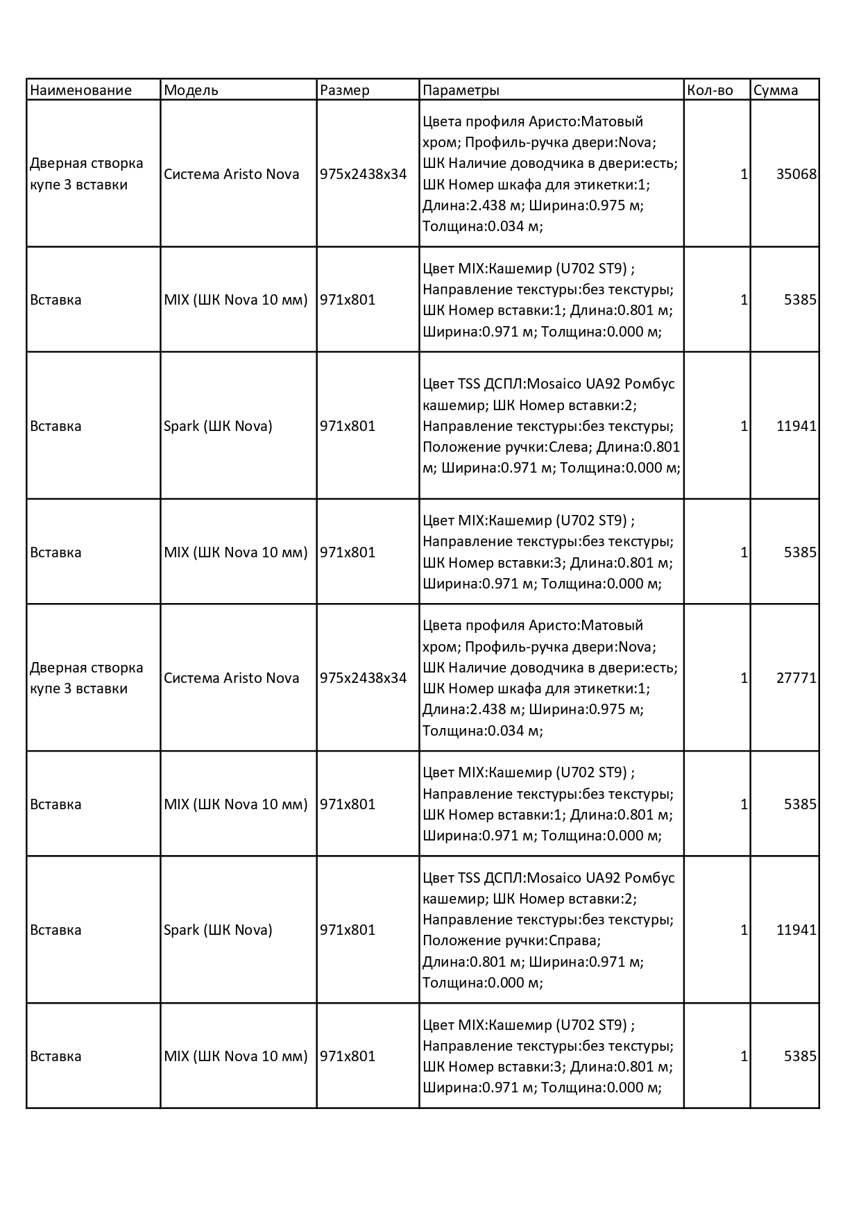 Размер одной створки: (Ш/В/Г) 975x2438x34