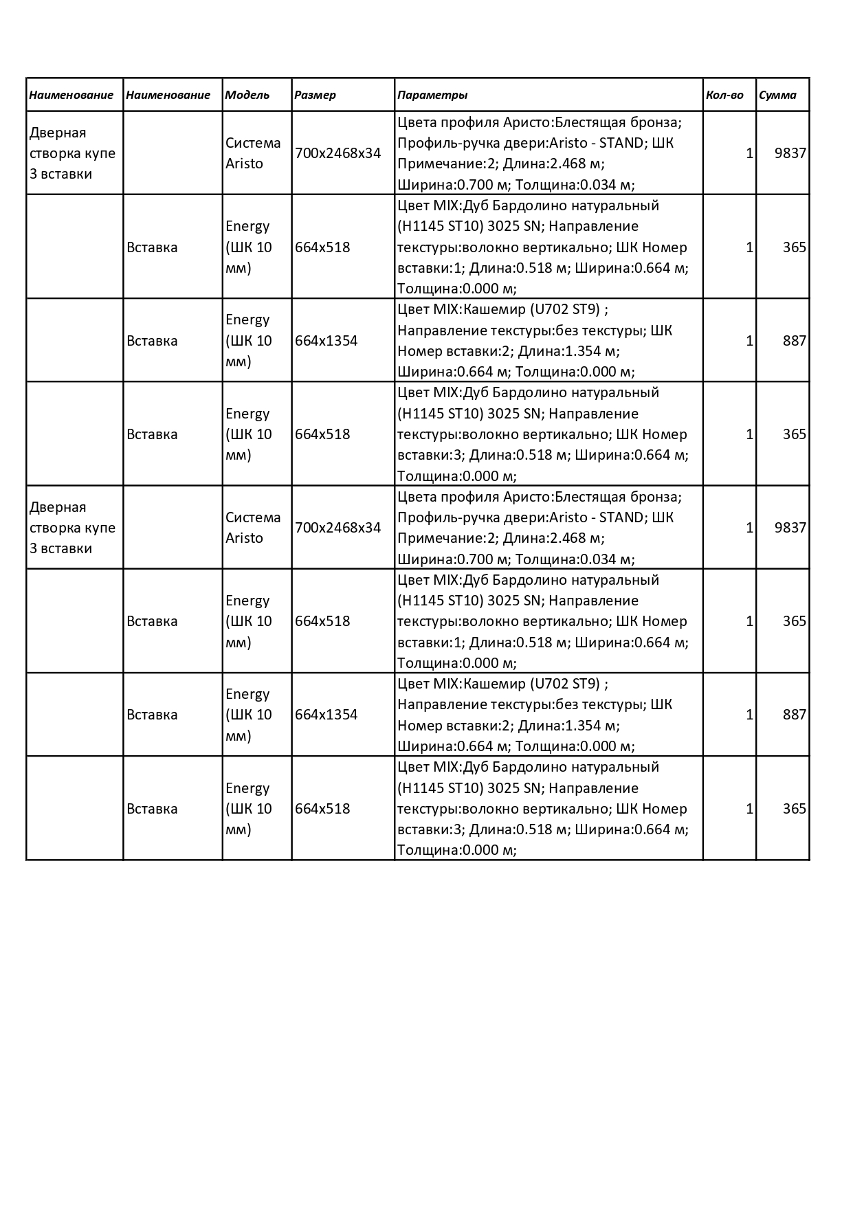 Размер одной створки (Ш/В/Г) 700x2468x34