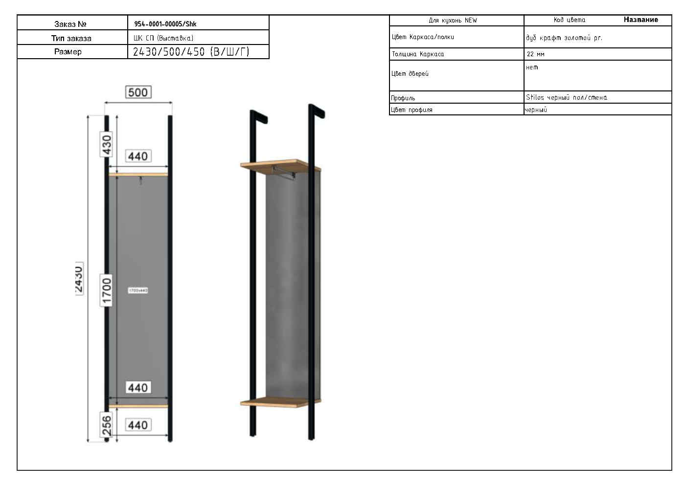 Размер системы хранения: (В/Ш/Г/) 2450/500/450 мм.