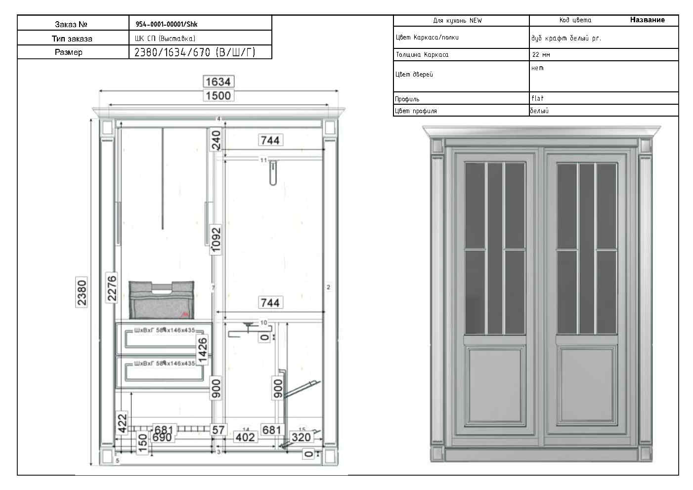 Размер шкафа-купе: (В/Ш/Г/) 2380/1634/670 мм.