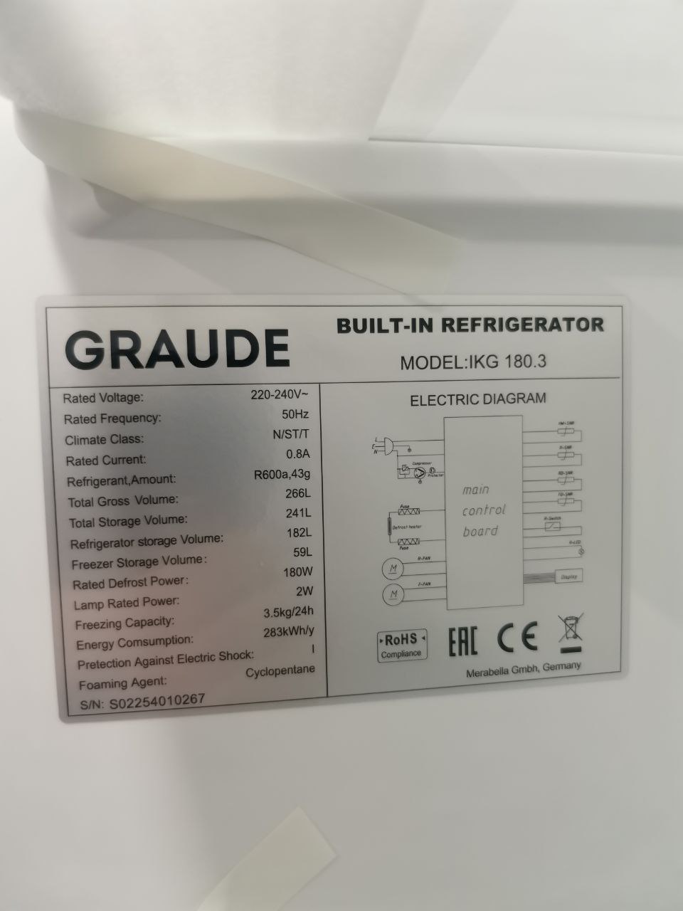 Общий объем холодильной камеры (л) 180