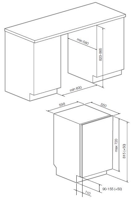 Размеры ниши для встраивания (В х Ш х Г), см 82-86.5 х 60 х 58