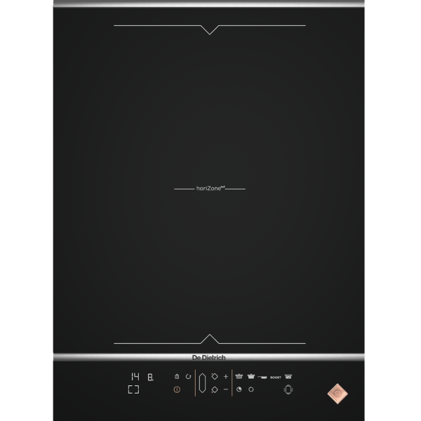 De Dietrich DPI7468XS — индукционная варочная панель с функцией автоматического распознавания посуды. Модель снабжена свободной зоной нагрева horiZone, которая может использоваться в качестве двух независимых конфорок. Индикация остаточного тепла и центральная блокировка гарантируют безопасную эксплуатацию прибора.