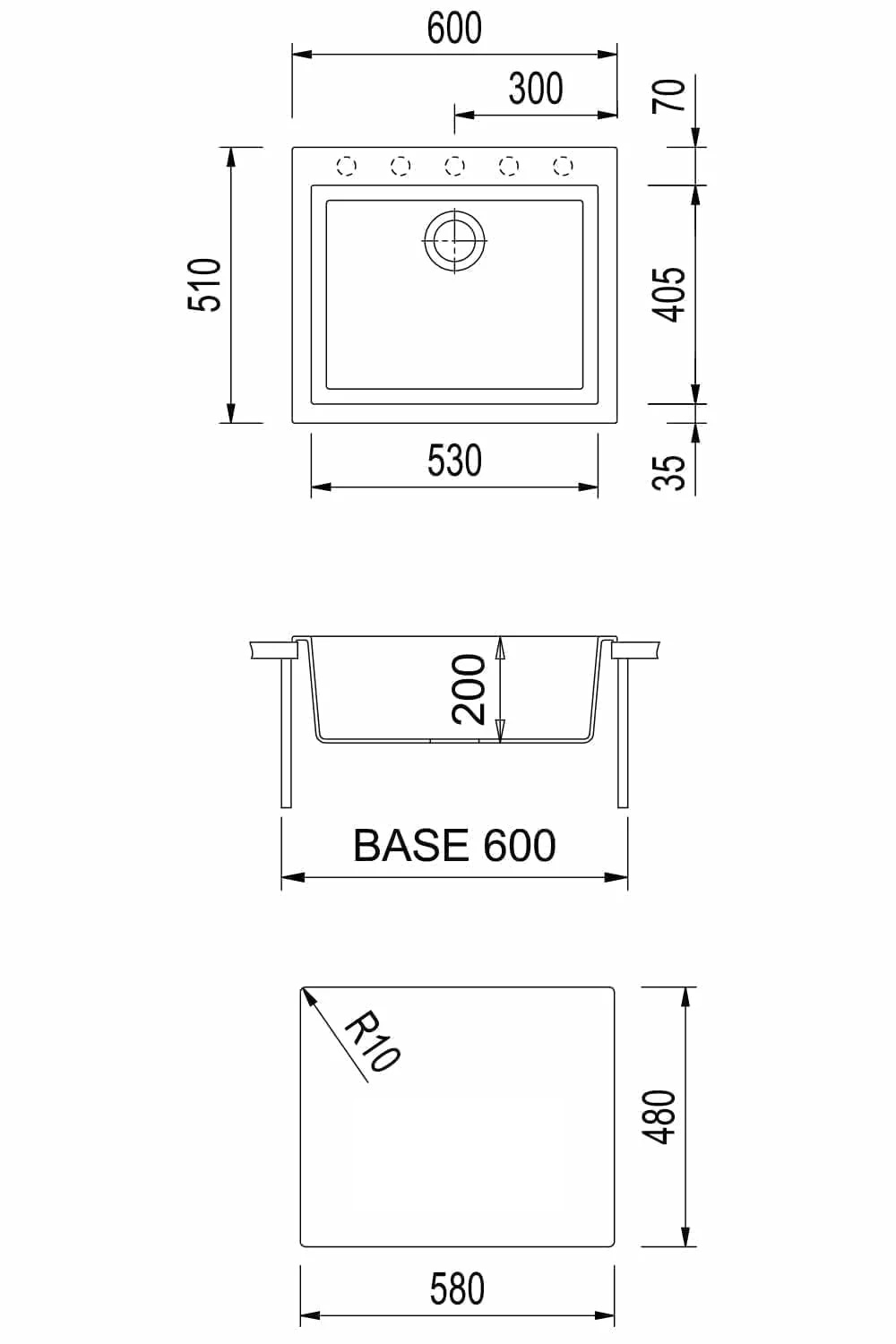 Размер монтажного отверстия под мойку (ШхГ) 58x48 см
