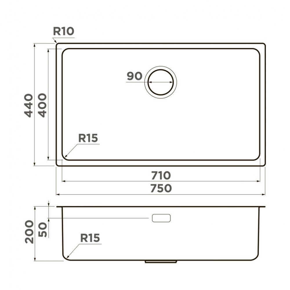 Размер мойки 750 x 440 мм