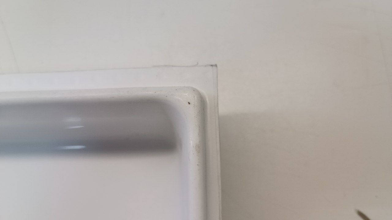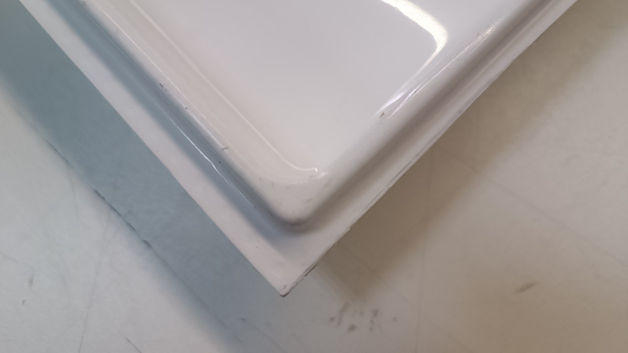 Загрязнения по периметру лотка; 1 край обломан; загрязнения с обратной стороны лотка