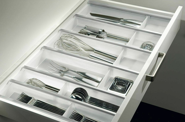 Особенности Если вы не знаете, какой тип ящика установлен в вашу кухню, измерьте внутренние размеры вашего выдвижного ящика и подберите лоток соответствующего размера. В приведенных габаритах ширина лотка указана без учета размеров боковых ограничительных профилей. При их использовании ширина лотка увеличивается на 5-20мм.