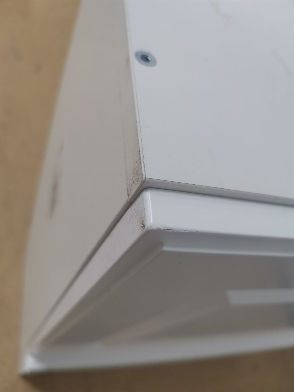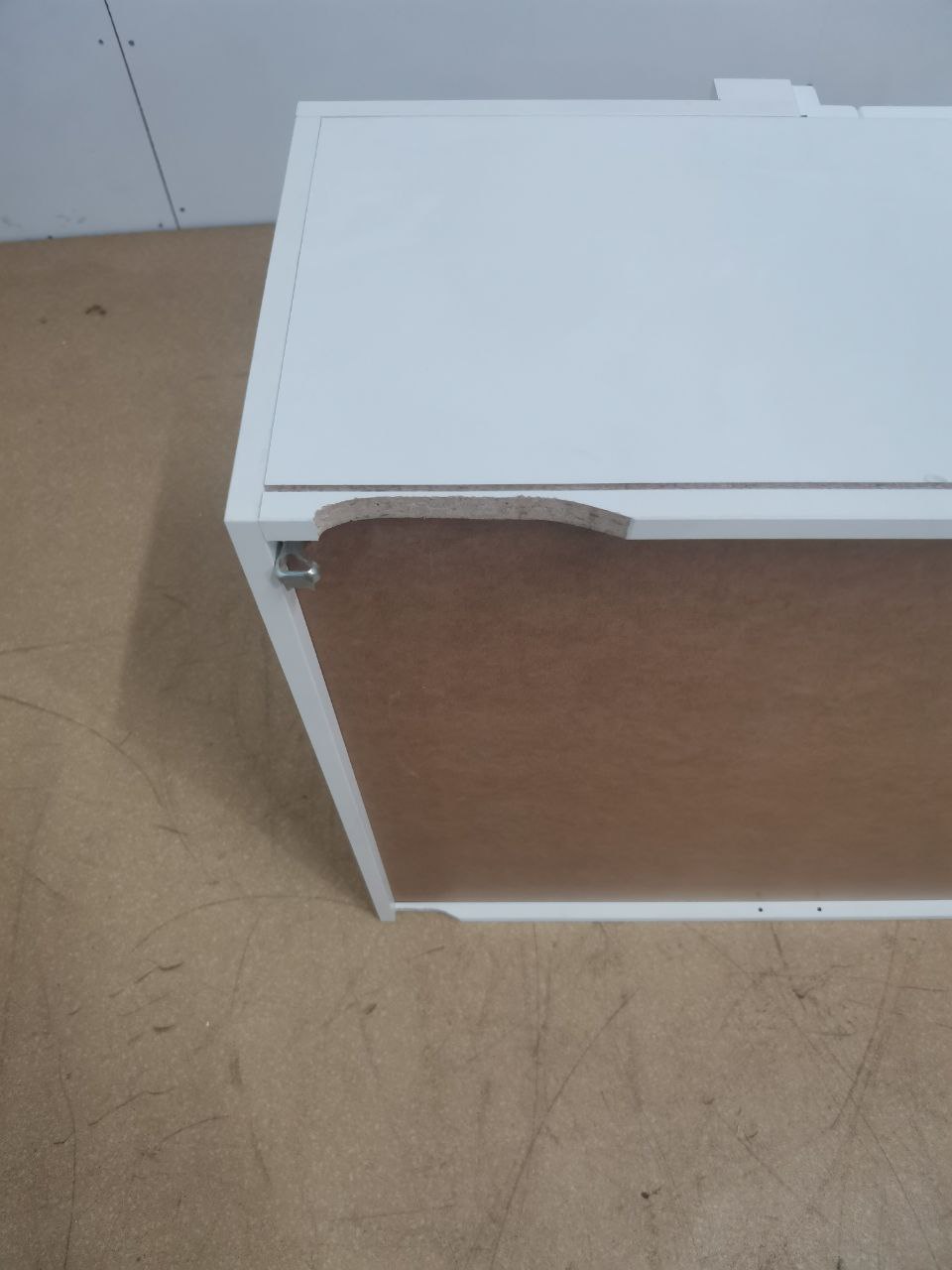 Скол на фасаде; верхняя крышка ящика собрана и запилена неверно