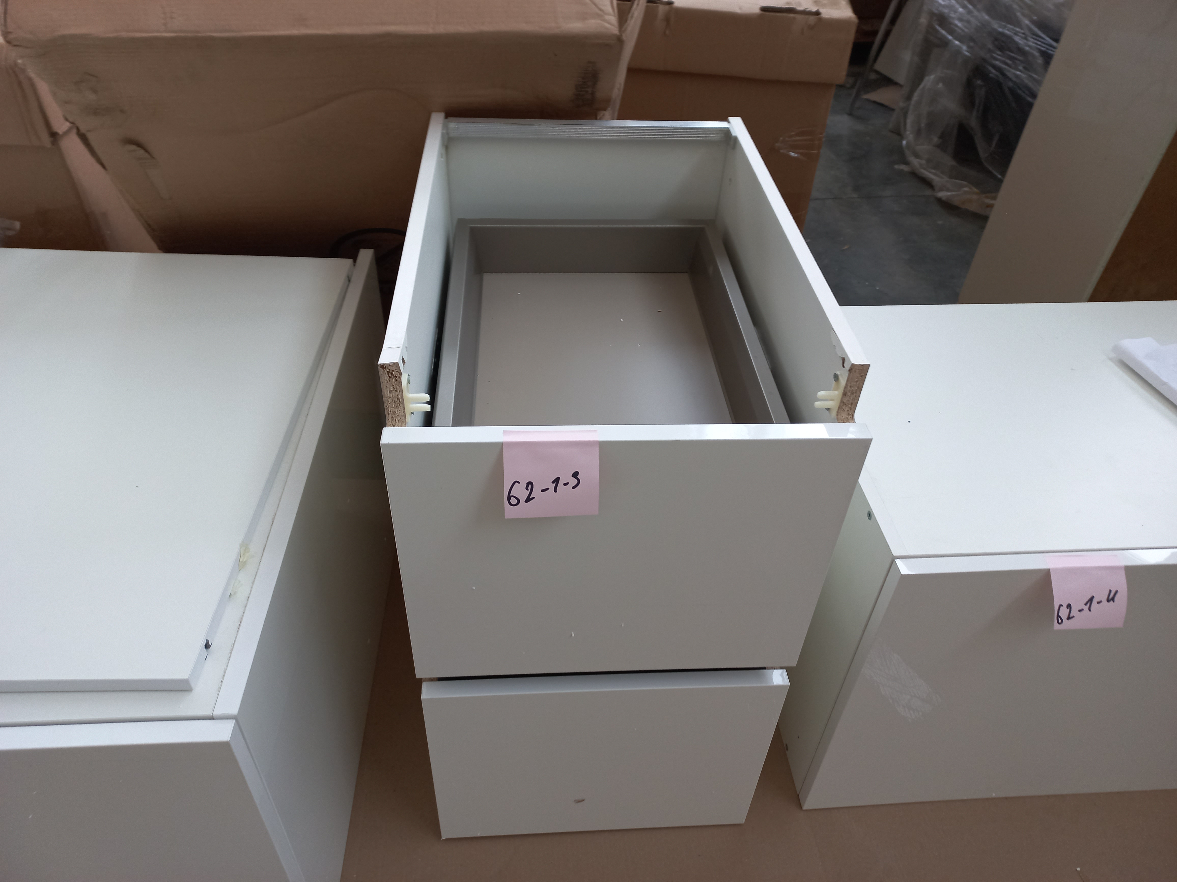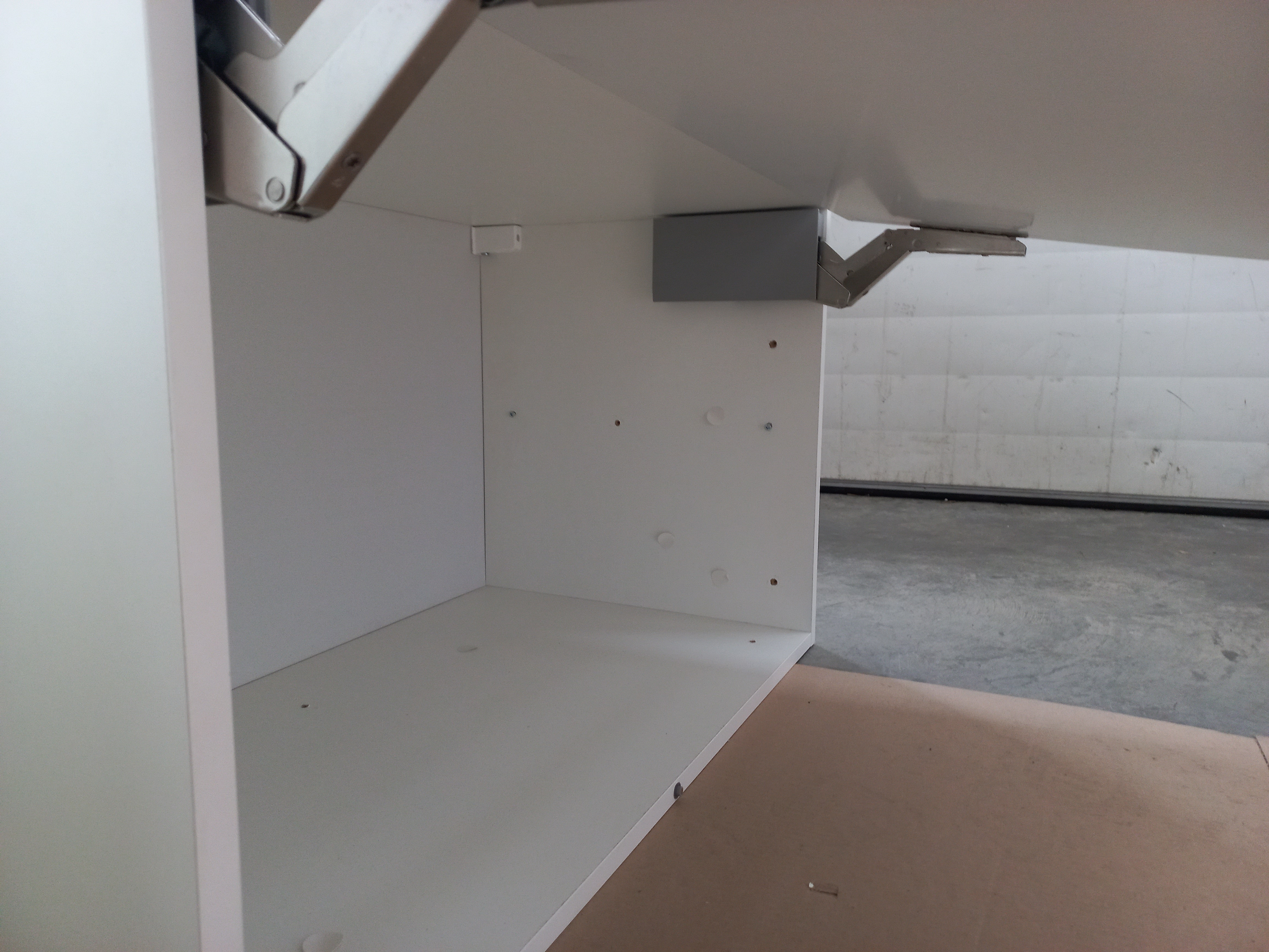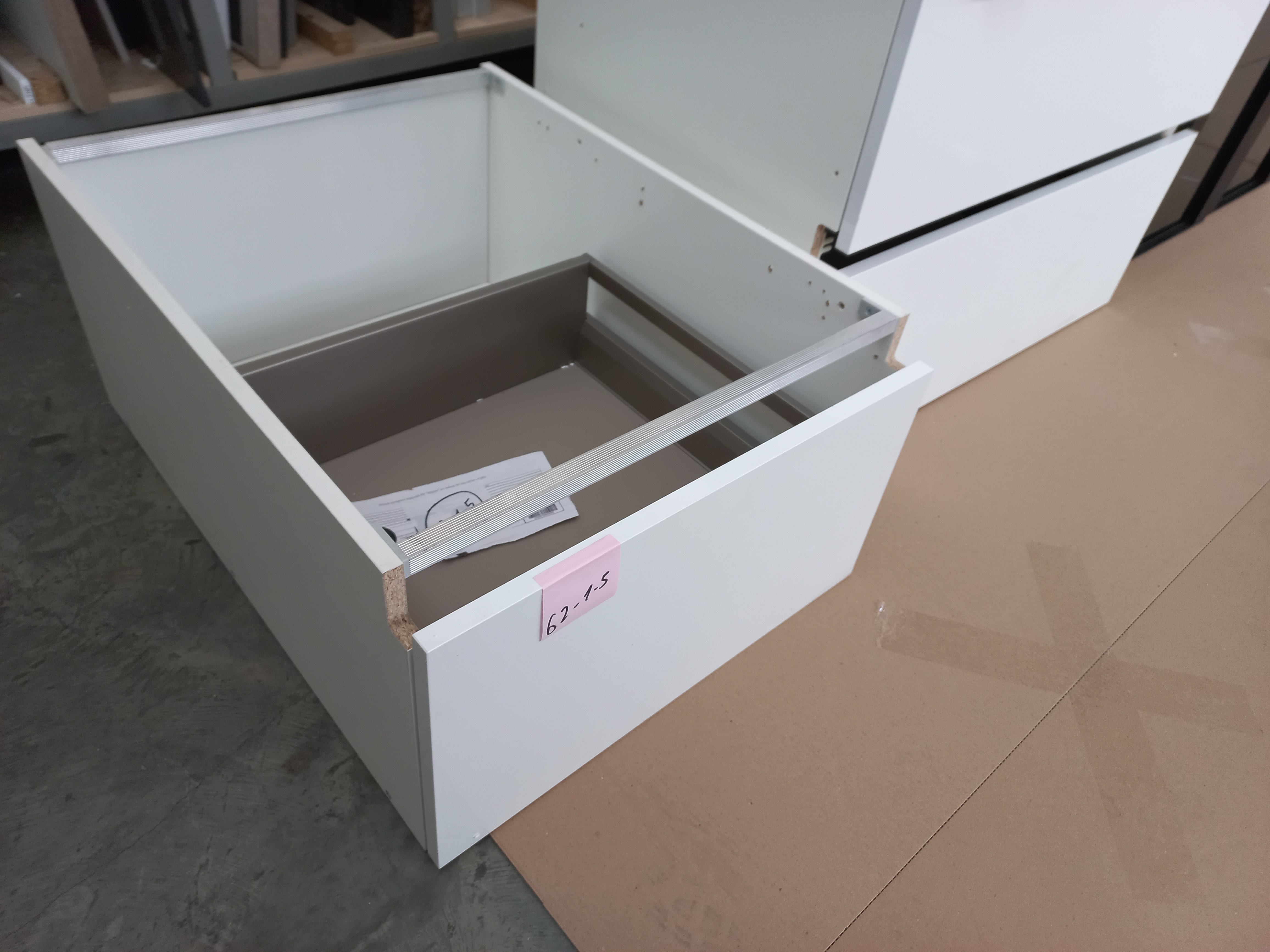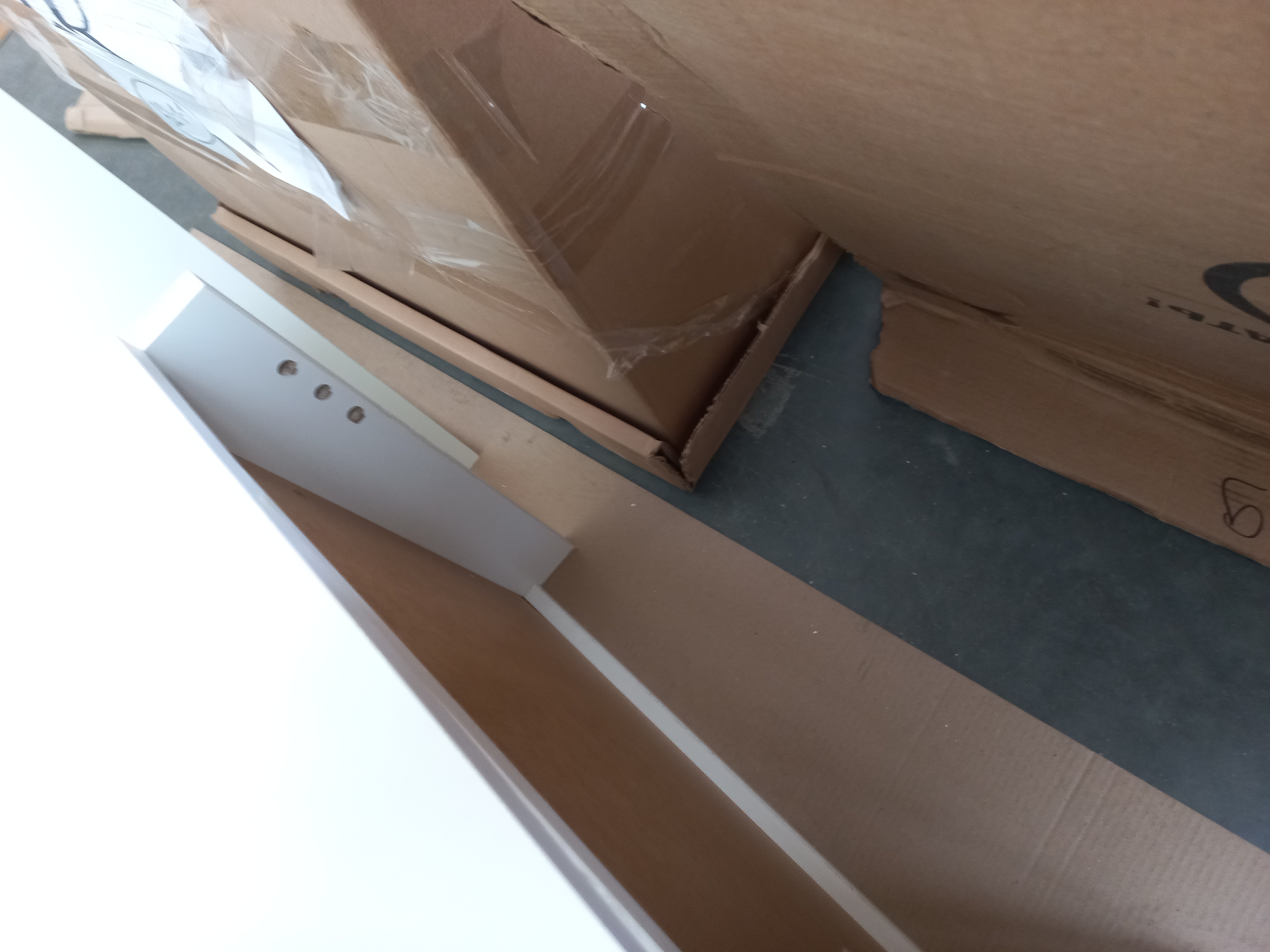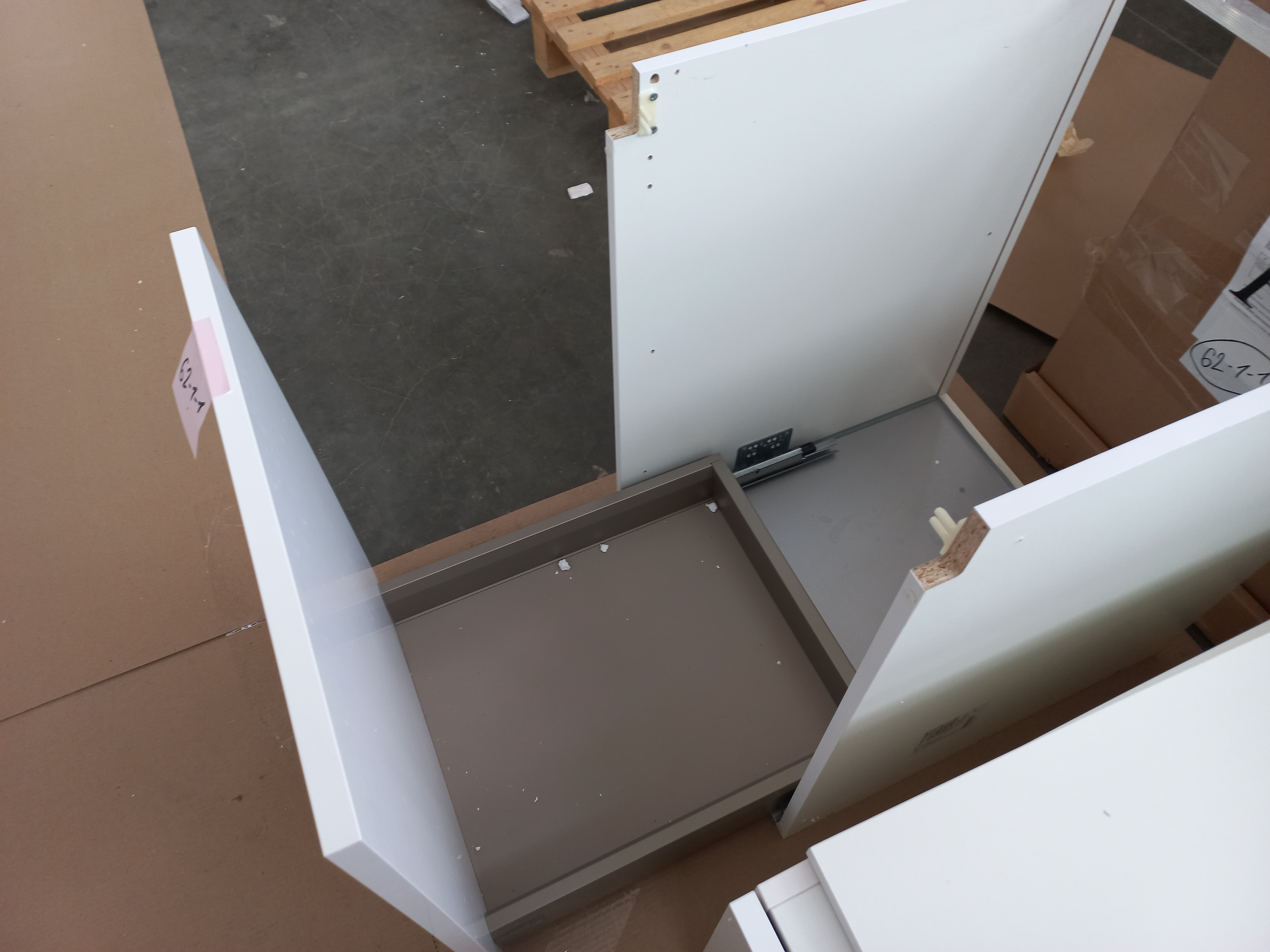 Внешний вид, описание дефектов: Возможно присутствие незначительных потертостей и царапин. Сколы, царапины, вырезы каркаса. В некоторых секциях сломаны: скрепляющие части каркаса и элементы каркаса рядом с профилем GOLA (см. фото). Секция над варочной панелью под встраиваемую вытяжку, с фасадным дном снизу (см. фото). Нестандартные глубины секций подразумевают свес столешницы сзади 200мм.