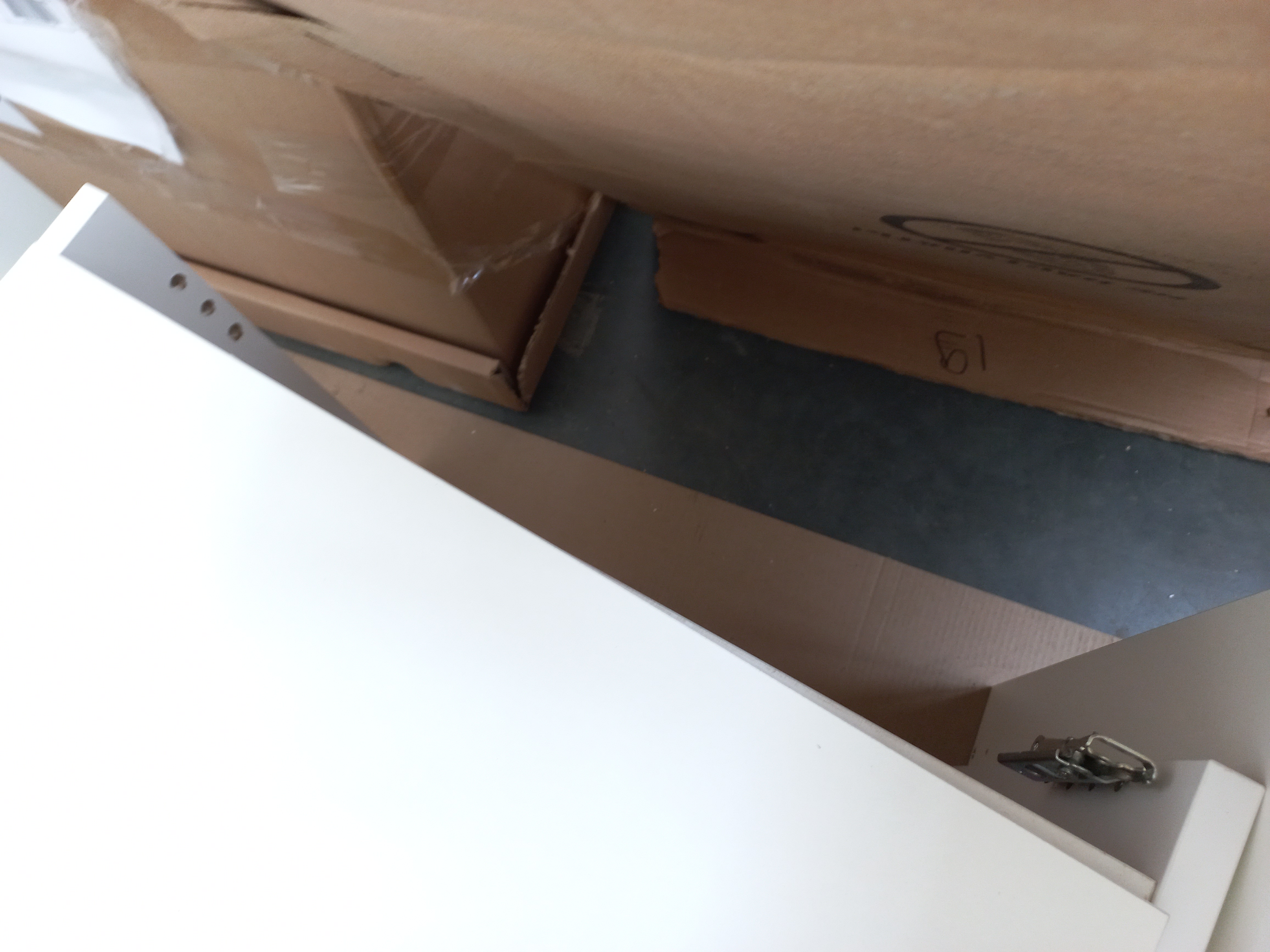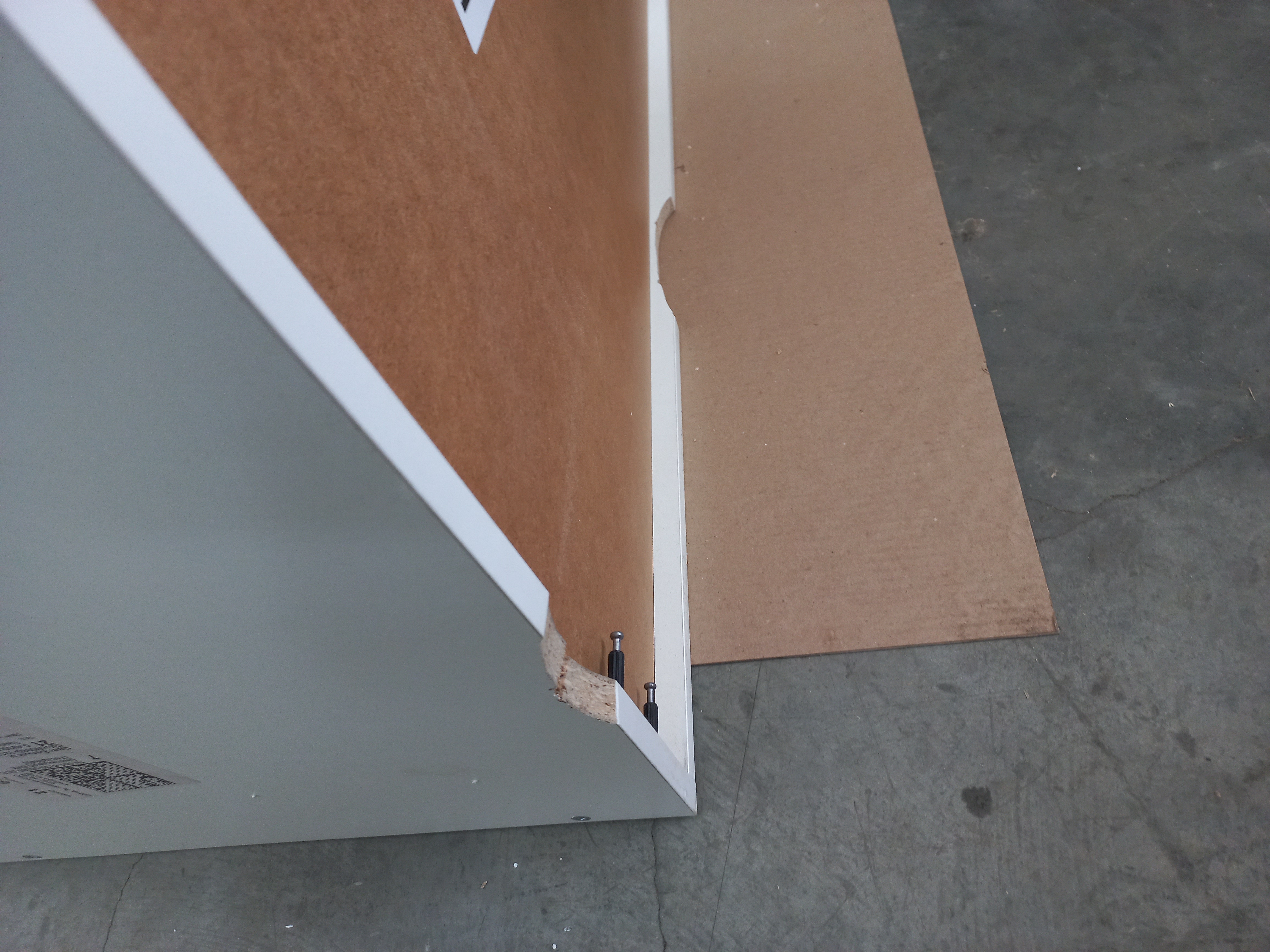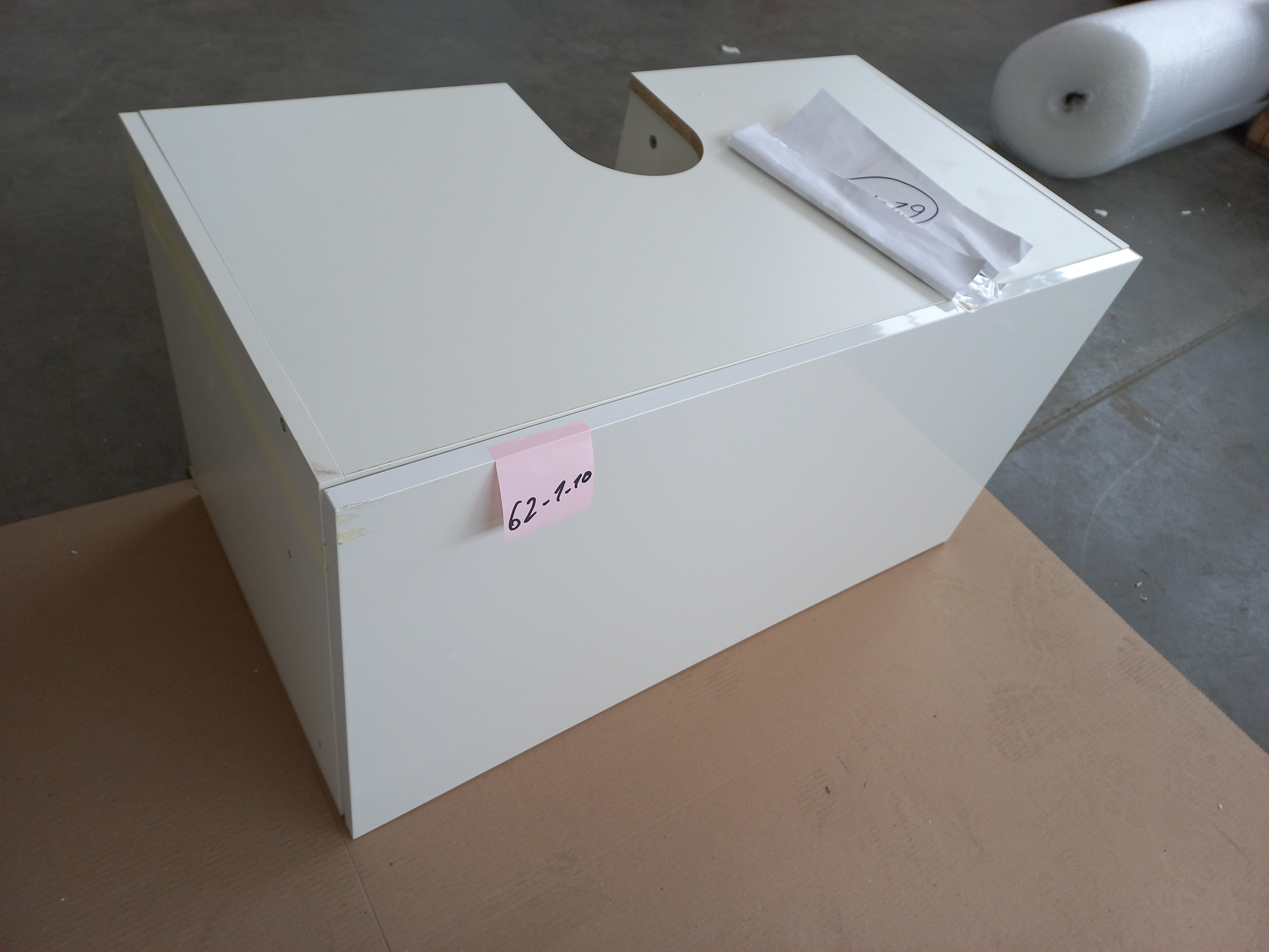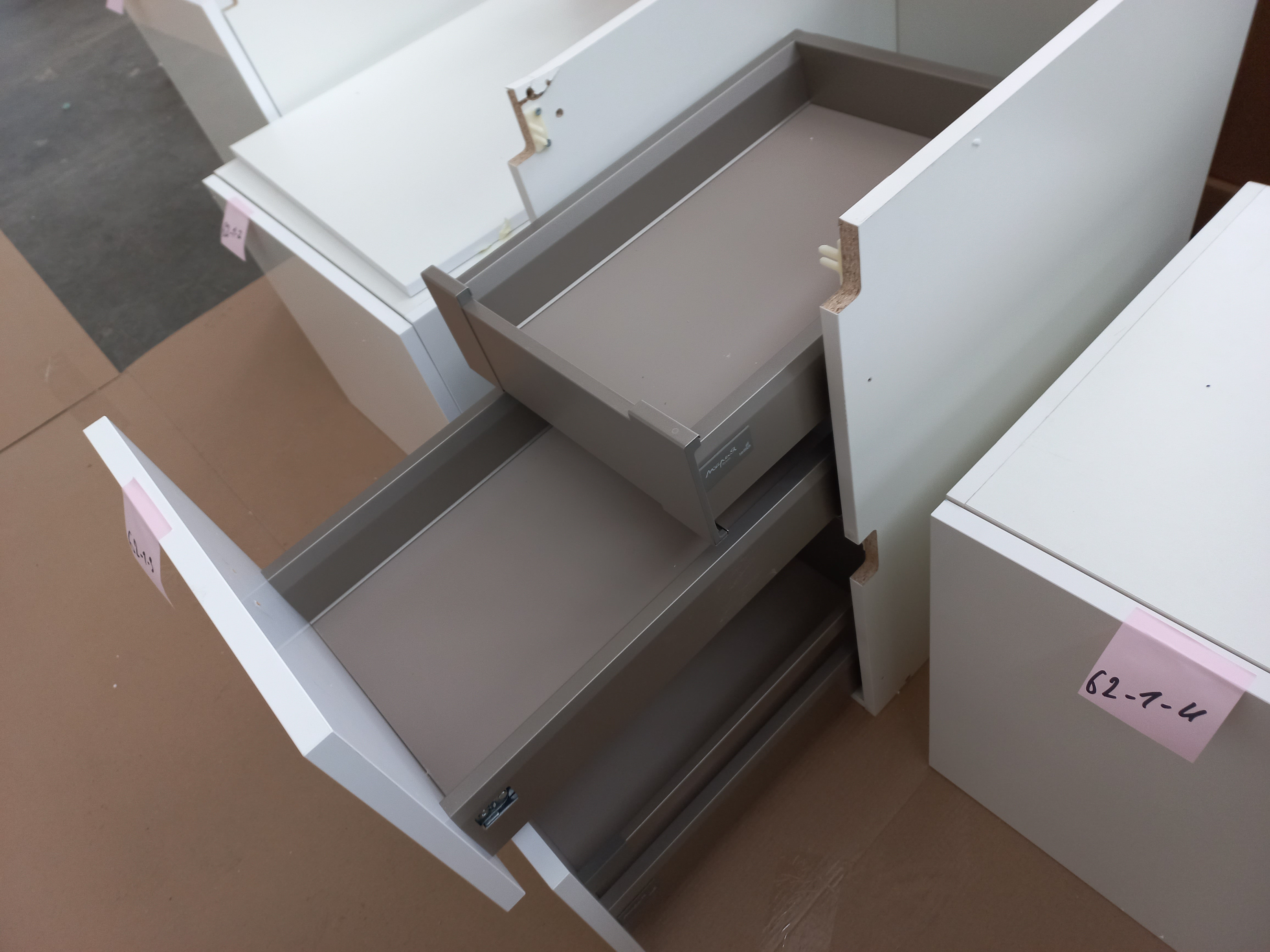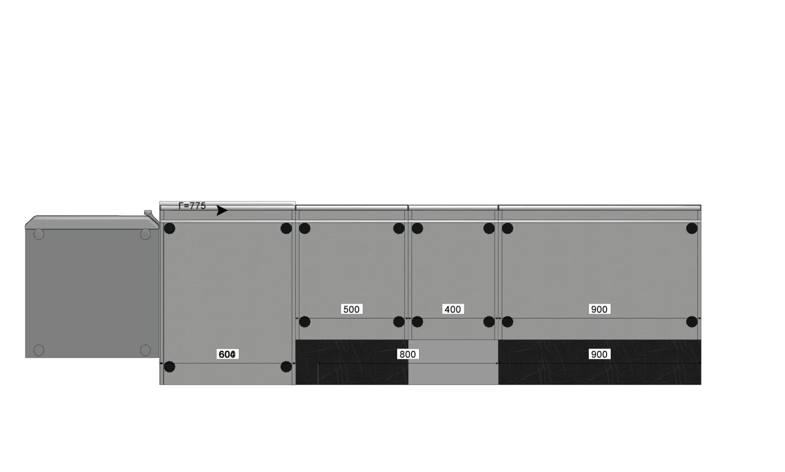 Внешний вид, описание дефектов: Возможно присутствие незначительных потертостей и царапин. Сколы, царапины, вырезы каркаса. В некоторых секциях сломаны: скрепляющие части каркаса и элементы каркаса рядом с профилем GOLA (см. фото). Секция над варочной панелью под встраиваемую вытяжку, с фасадным дном снизу (см. фото). Нестандартные глубины секций подразумевают свес столешницы сзади 200мм.