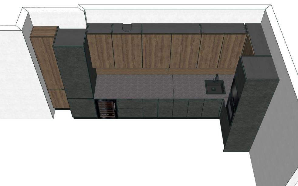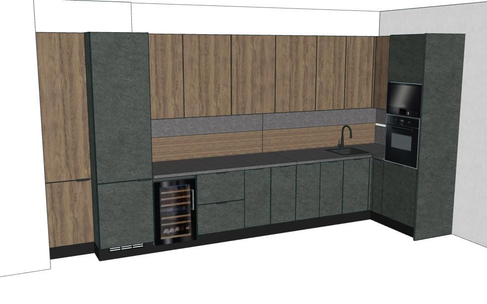 Размер Кухни слева направо В/Ш/Г: 2435/4653*1575/725*620 мм. (см. эскизы)