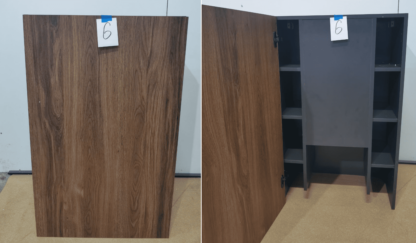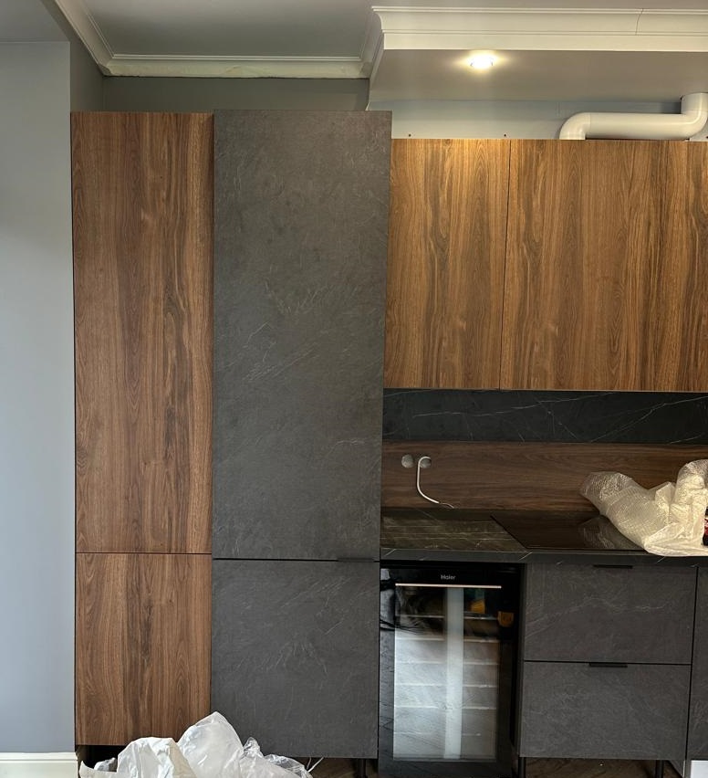 фасады, выполненные из ДСП 20 мм. Покрытие с двух сторон глянцевым или текстурированным пластиком, кромка ABS 1 мм с четырех сторон;