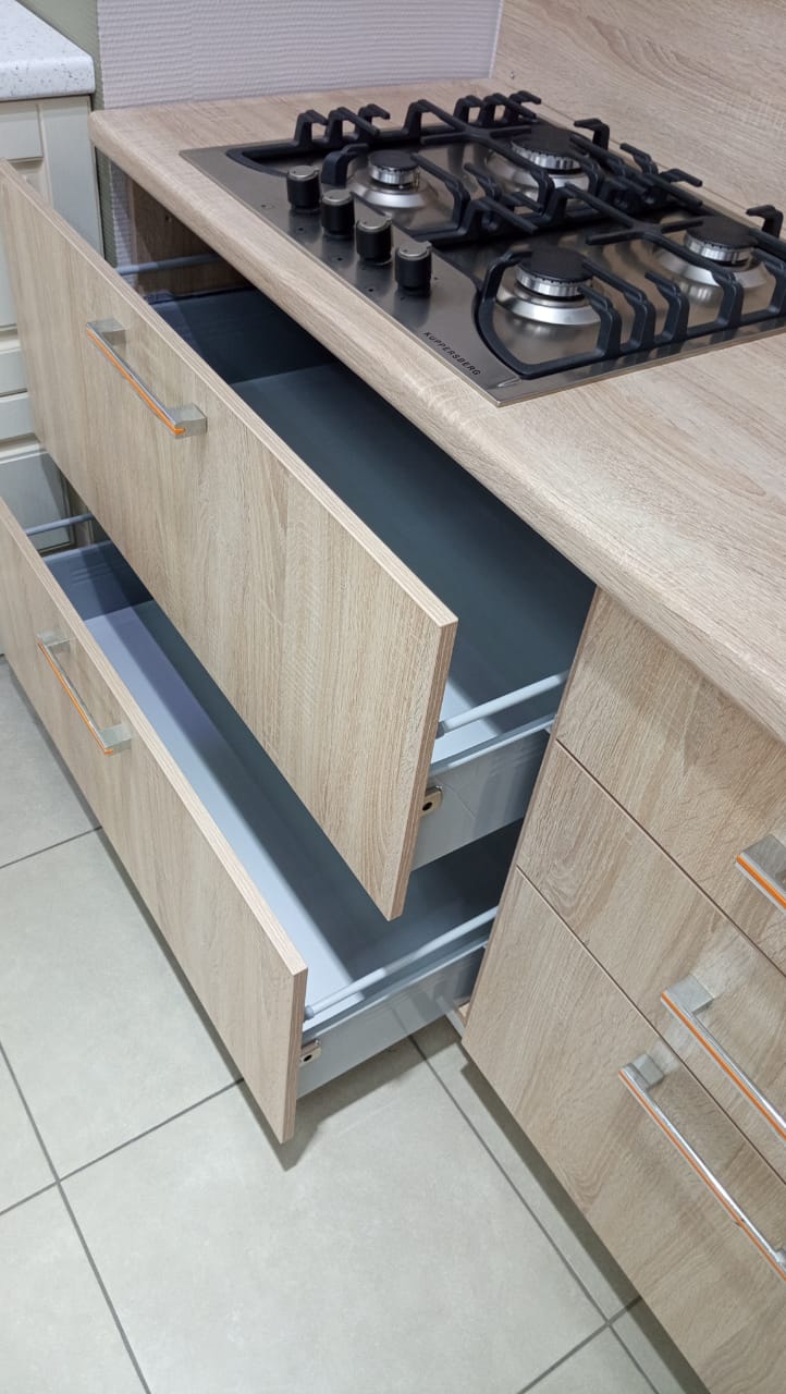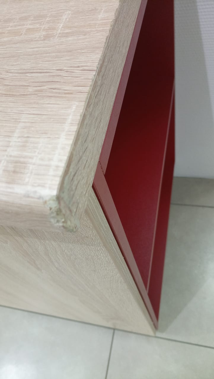Внешний вид, описание дефектов: На столешнице следы от установки плинтуса (отверстия); дефекты пластика на верхнем модуле ящика 800; отсутствие плинтуса на столешнице; стеновая искривлена; дефект на столешнице (скол справа, замазан воском) в районе мойки; отсутствие бокового цоколя; следы сбора и разбора. Возможно присутствие незначительных дефектов и царапин.