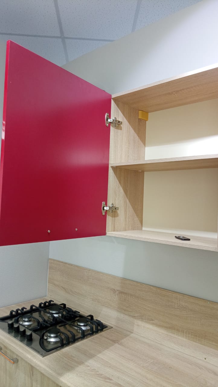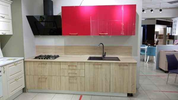 Абсолютно прямые фасады с древесными или однотонными текстурами отлично подходят для эко или скандинавского стиля. Модель изготавливается с классическими ручками, а цветная кромка на фасадах поможет выразить индивидуальность обладателя.