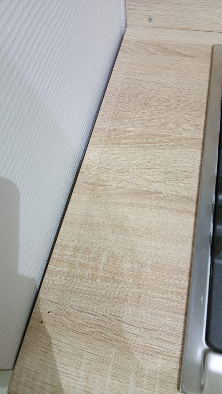 - дефект на столешнице (скол справа, замазан воском) в районе мойки;