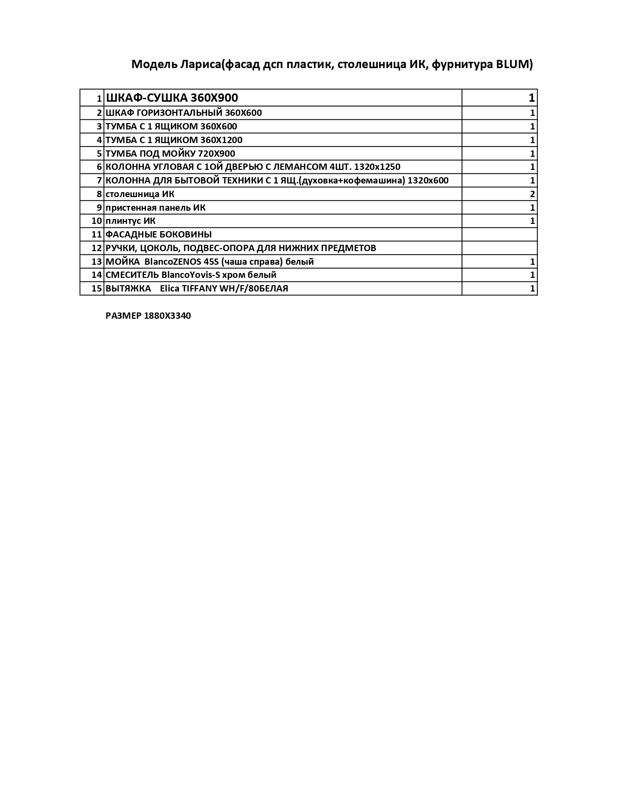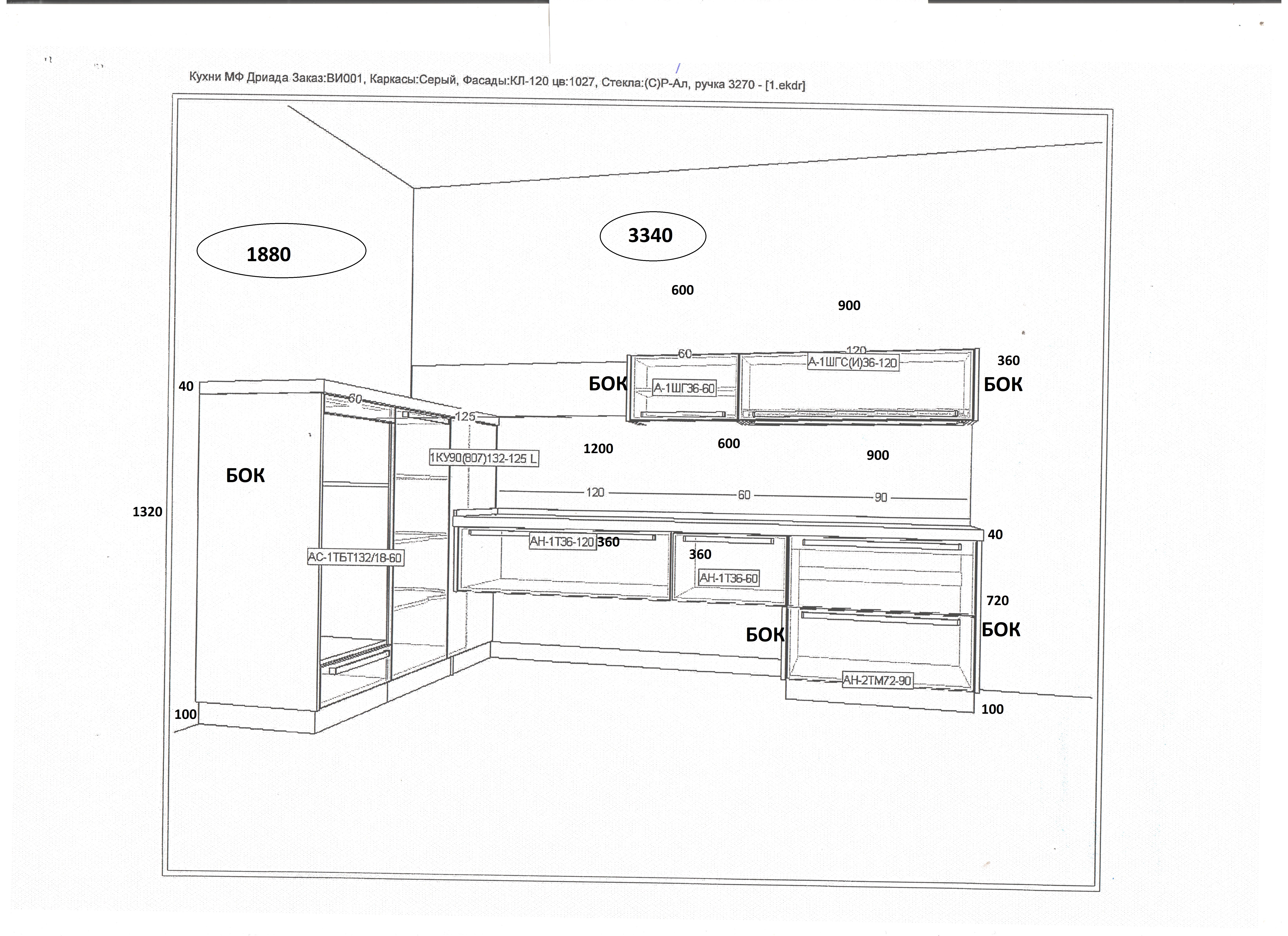 Размер Кухонного гарнитура: 1880 х 3340 мм
