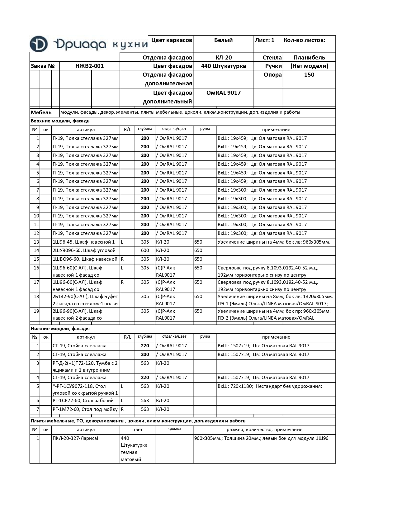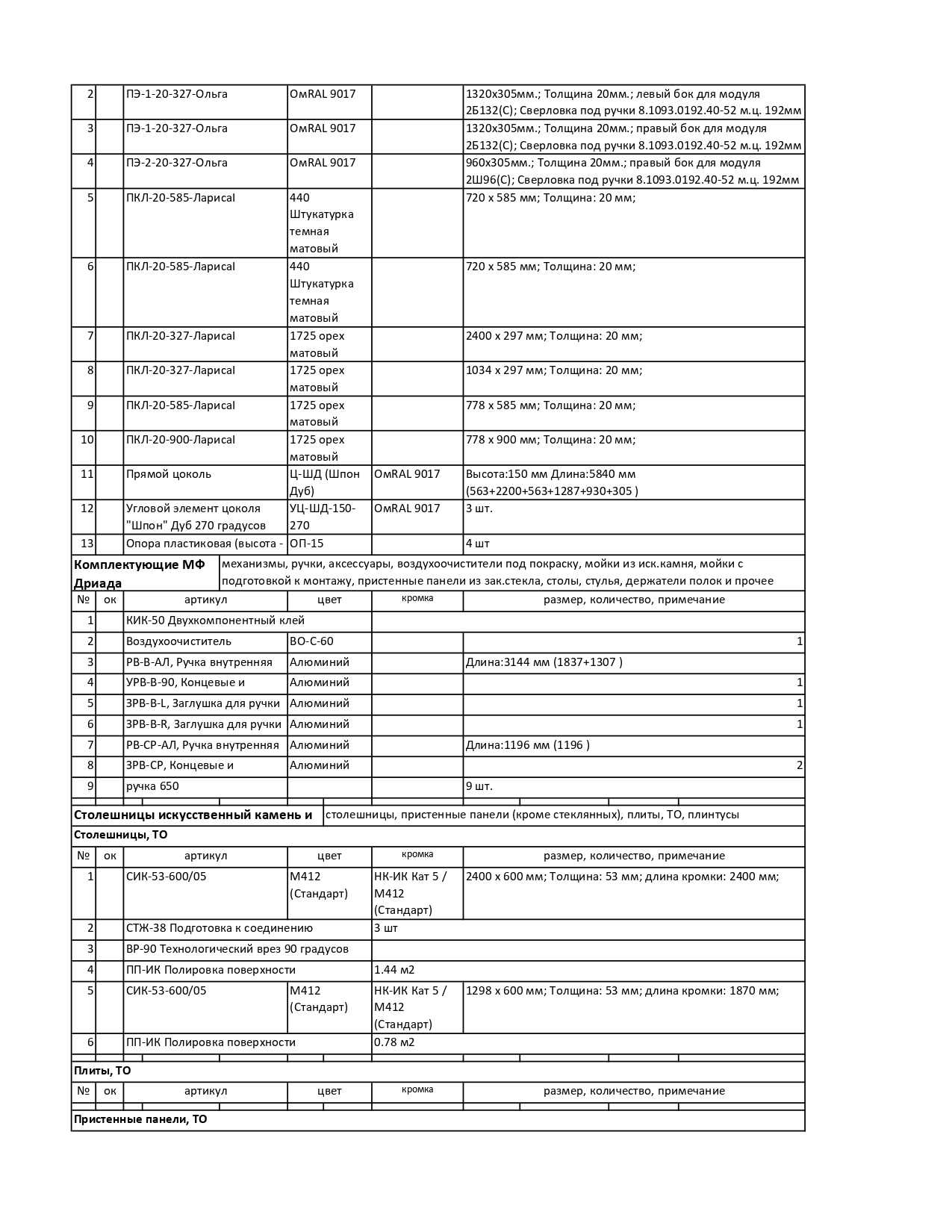 - (9 шт.) секции с фасадами (петли в комплекте) + накладные боковины