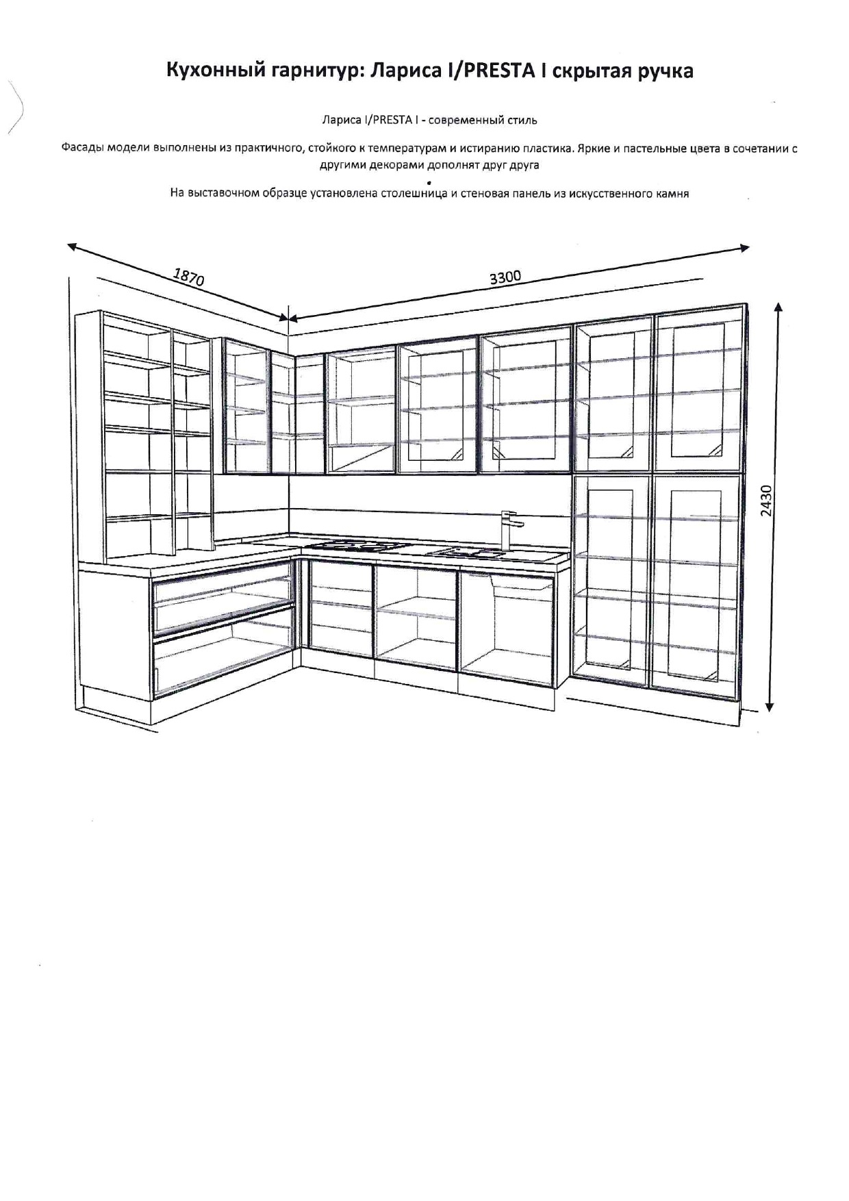 Размер Кухни слева направо: (В/Ш/Г) 1870*3300/2430/600