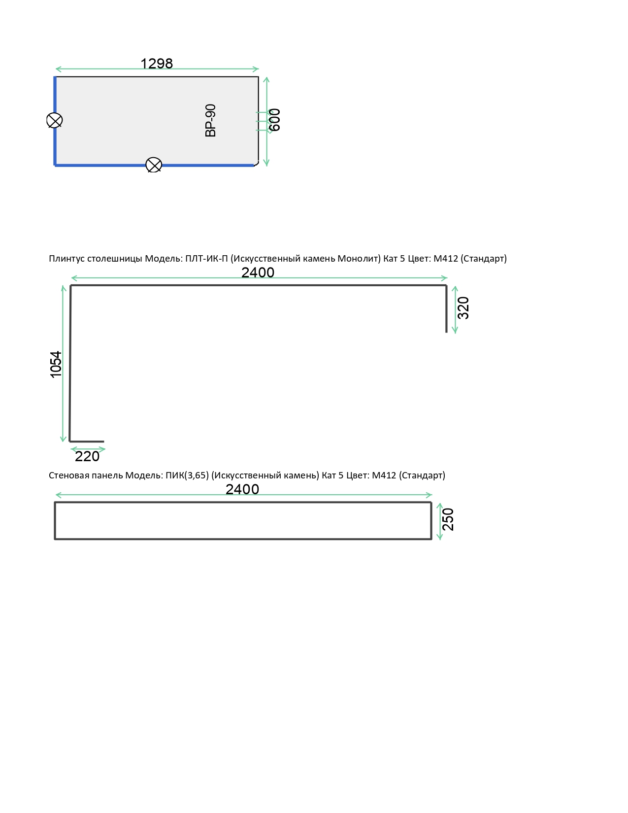 Цвет столешницы: Искусственный камень НК-ИК Кат 5 / M412 (Стандарт)