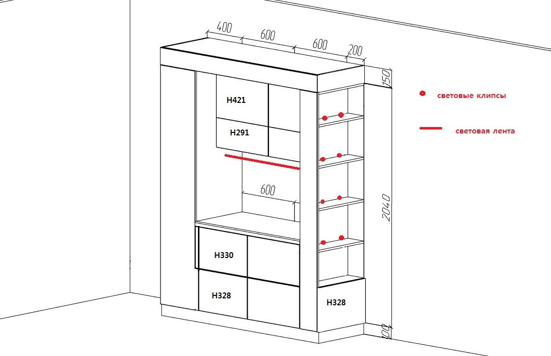 Стоимость данной кухни складывается из: