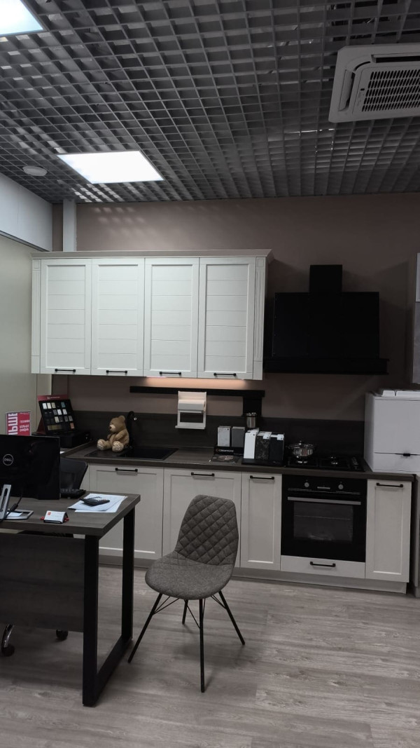 Внешний вид, описание дефектов: Кухонный гарнитур в идеальном состоянии, но т.к. это витринный образец, то могут присутствовать незначительные потертости, сколы, царапины. Отсутствует задняя стенка в одном из верхних секций.