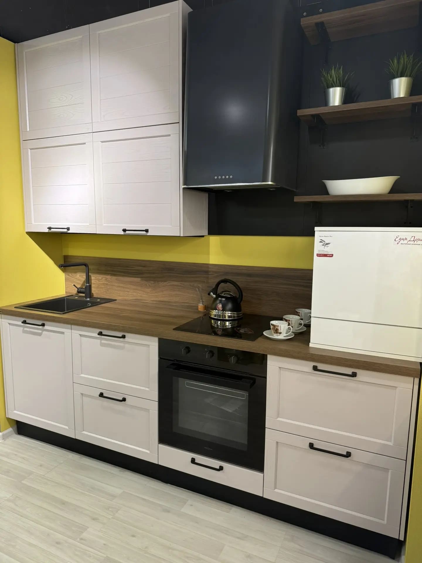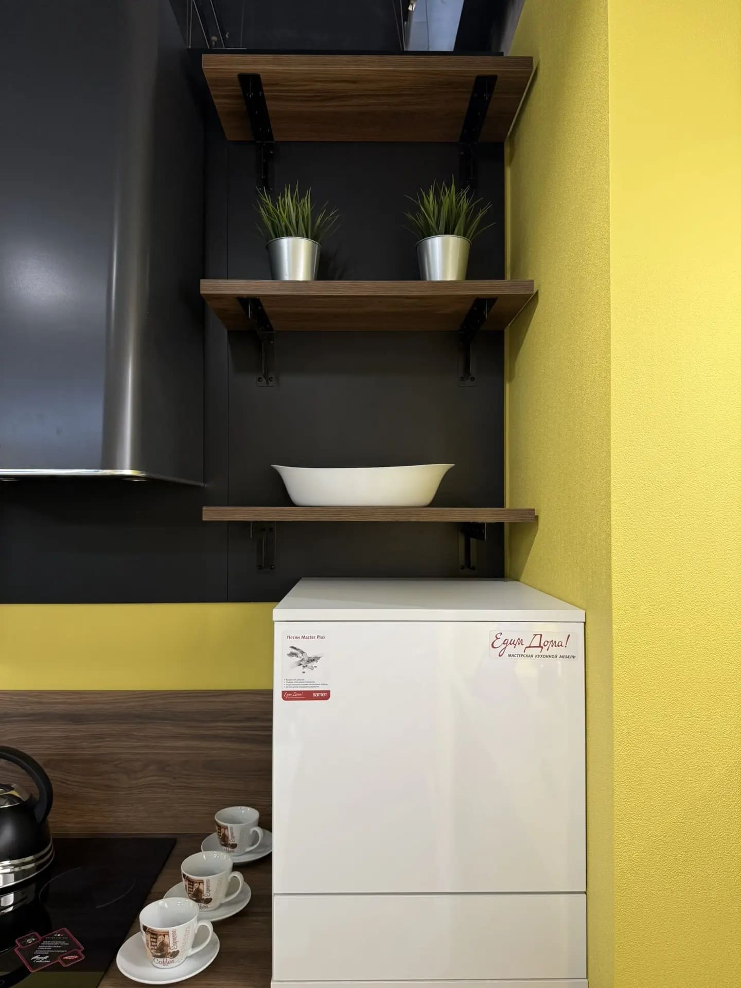 Фурнитура Hettich (Германия) с доводчиками, сушка для посуды INOXA (Италия).