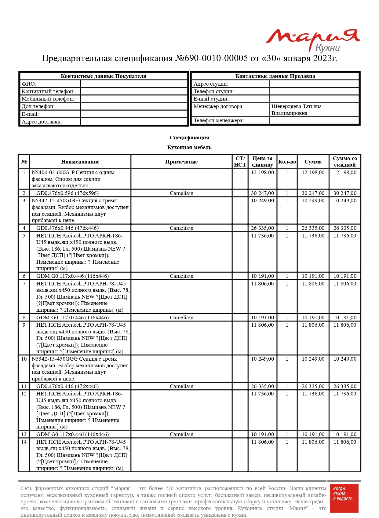 Стоимость данной кухни складывается из: