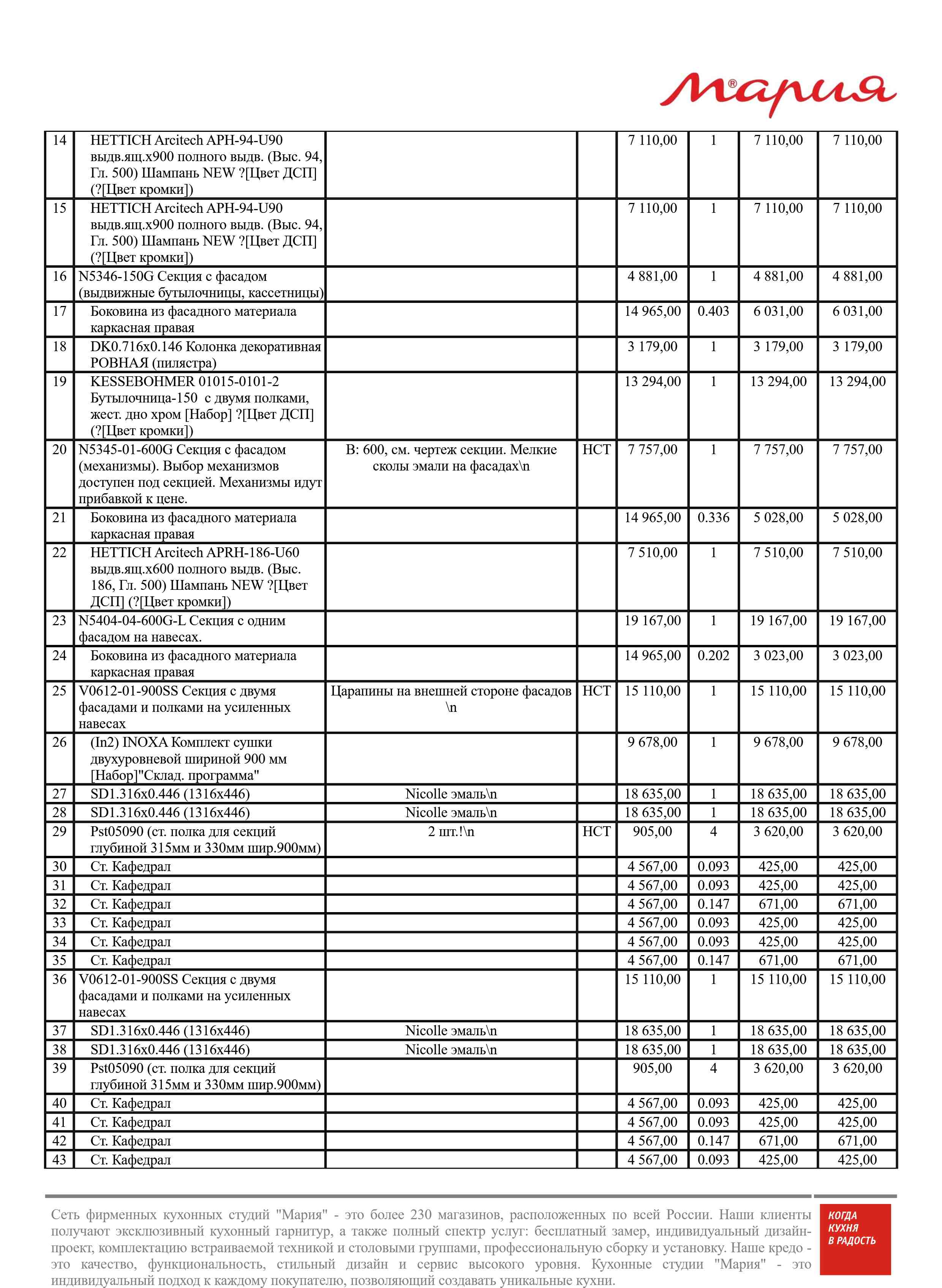 Стоимость данной кухни складывается из: