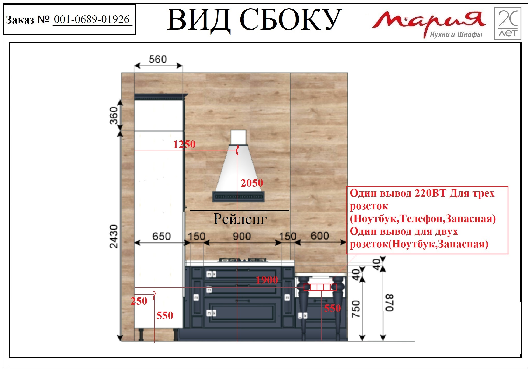 Размер Кухни слева направо: 3000/2450/1600 мм.