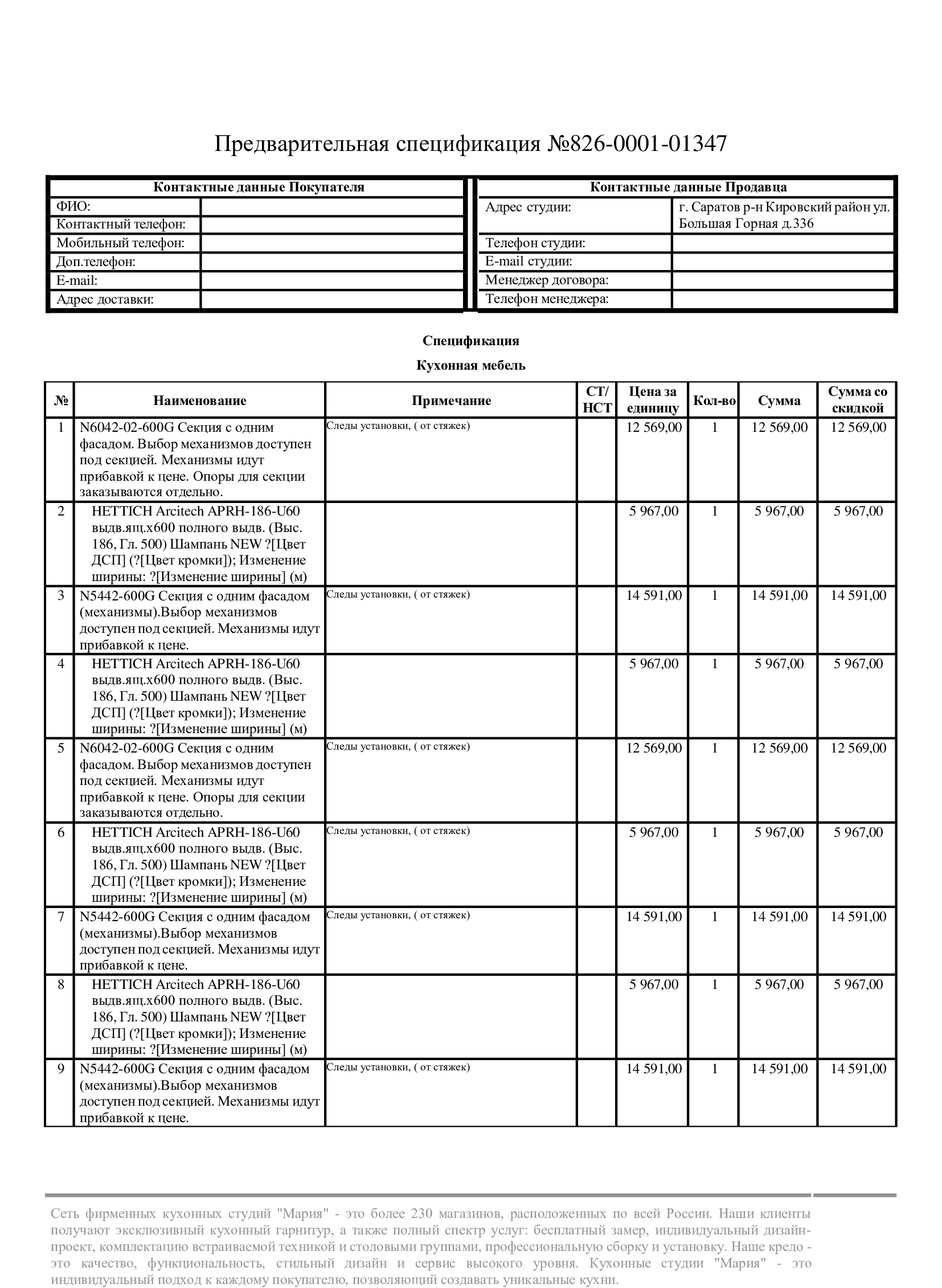 Стоимость данной кухни складывается из:
