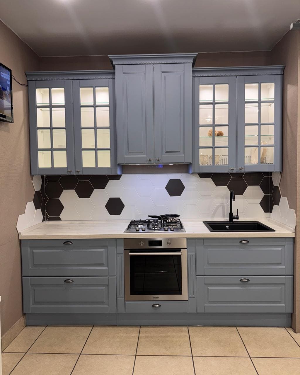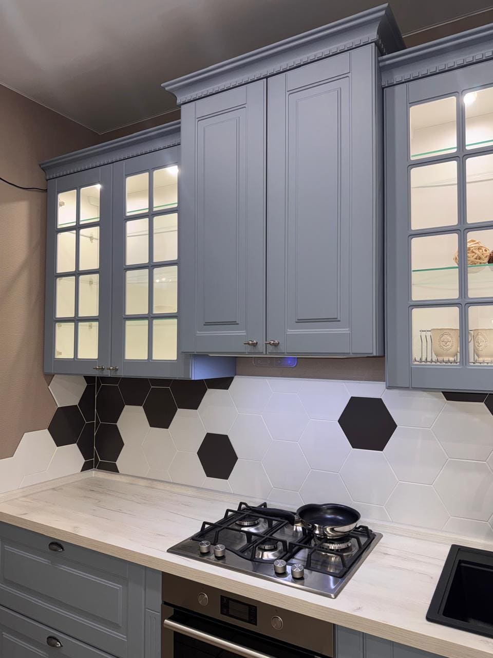 Образец Портофино , неоклассический стиль, уютная кухня, которая прекрасно подойдет как для частного дома, так и для квартиры, материал фасадов МДФ 19 мм, термопластик