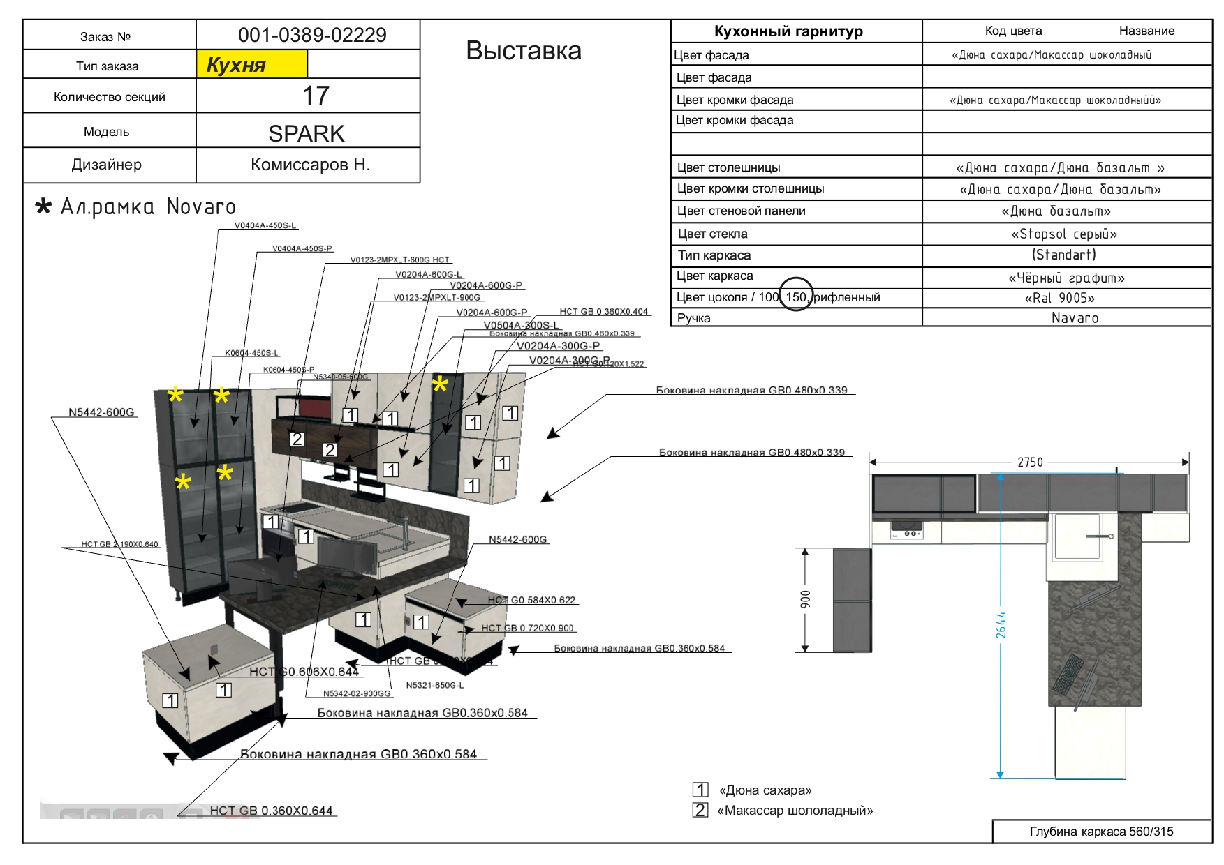 Размер Кухни слева направо: 2750/2644 мм.