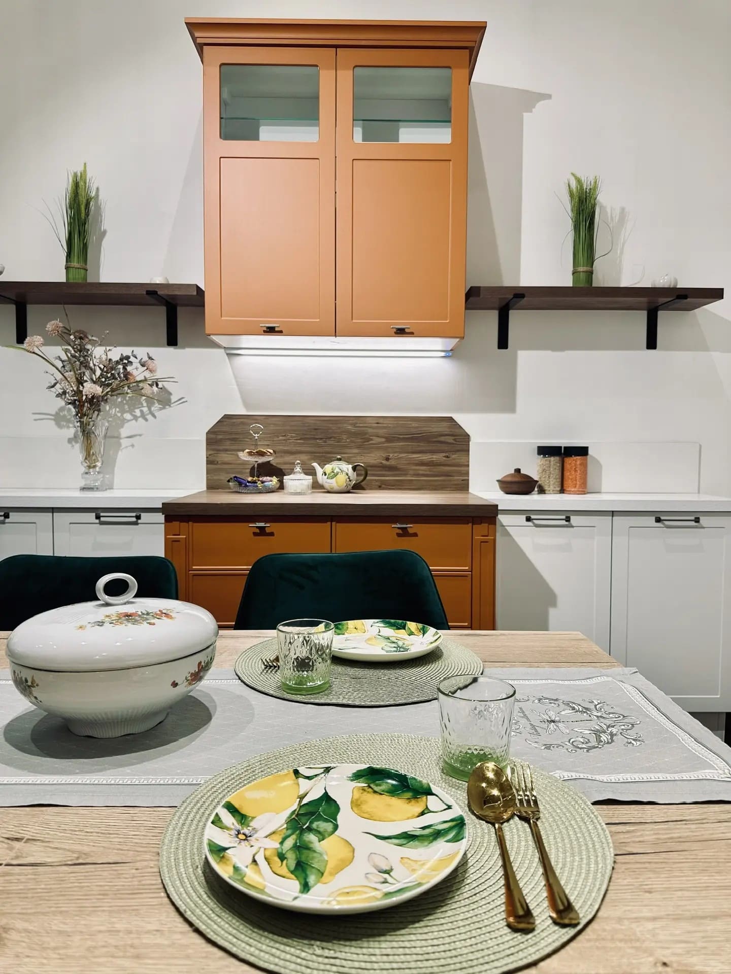 Подчеркнуть отдельные части кухни помогут дополнительные фасады с тонкими рамками и новые высокие колонки в пол. Для модели также разработаны декоративные фасады с двойной рамкой.