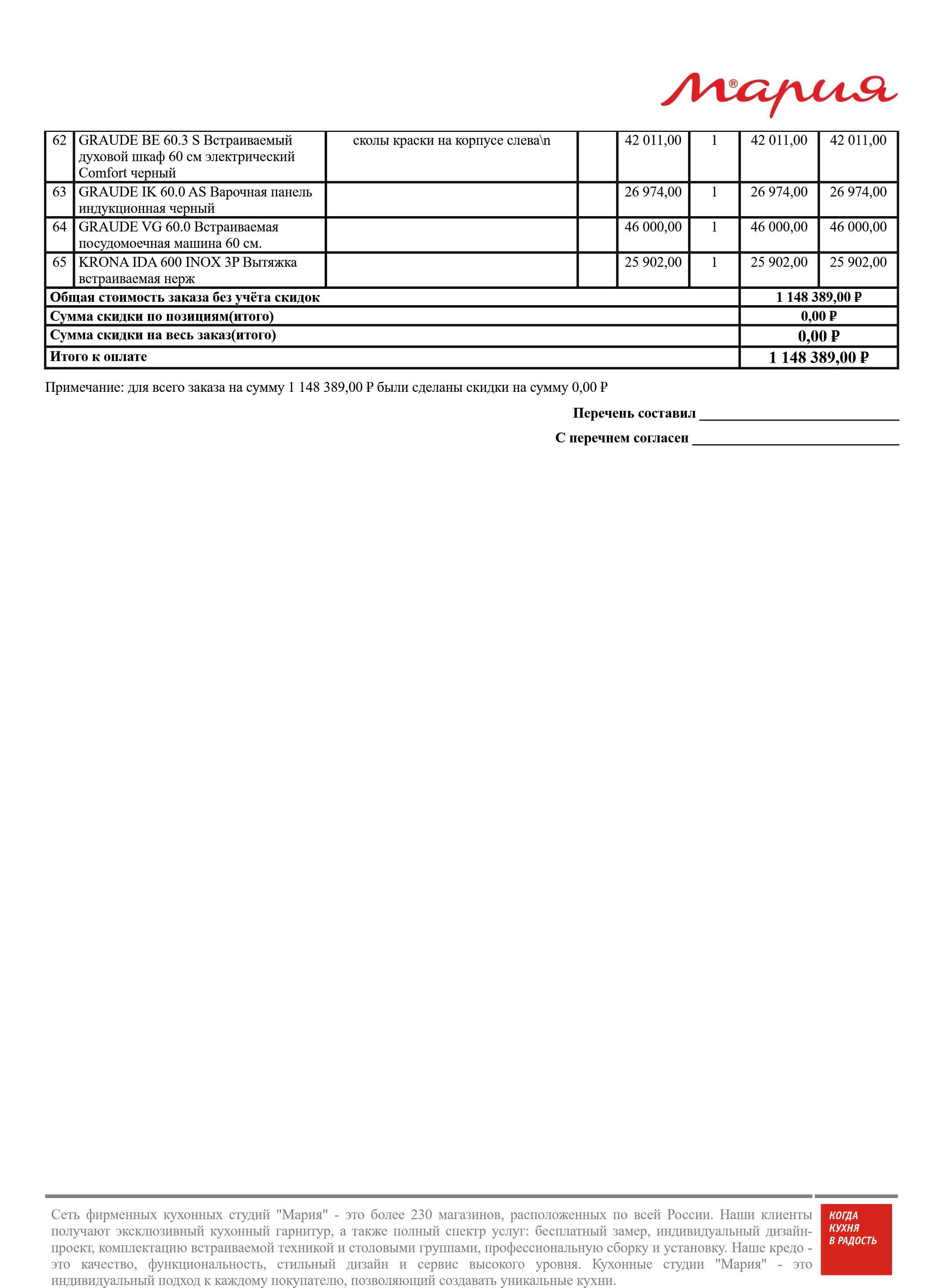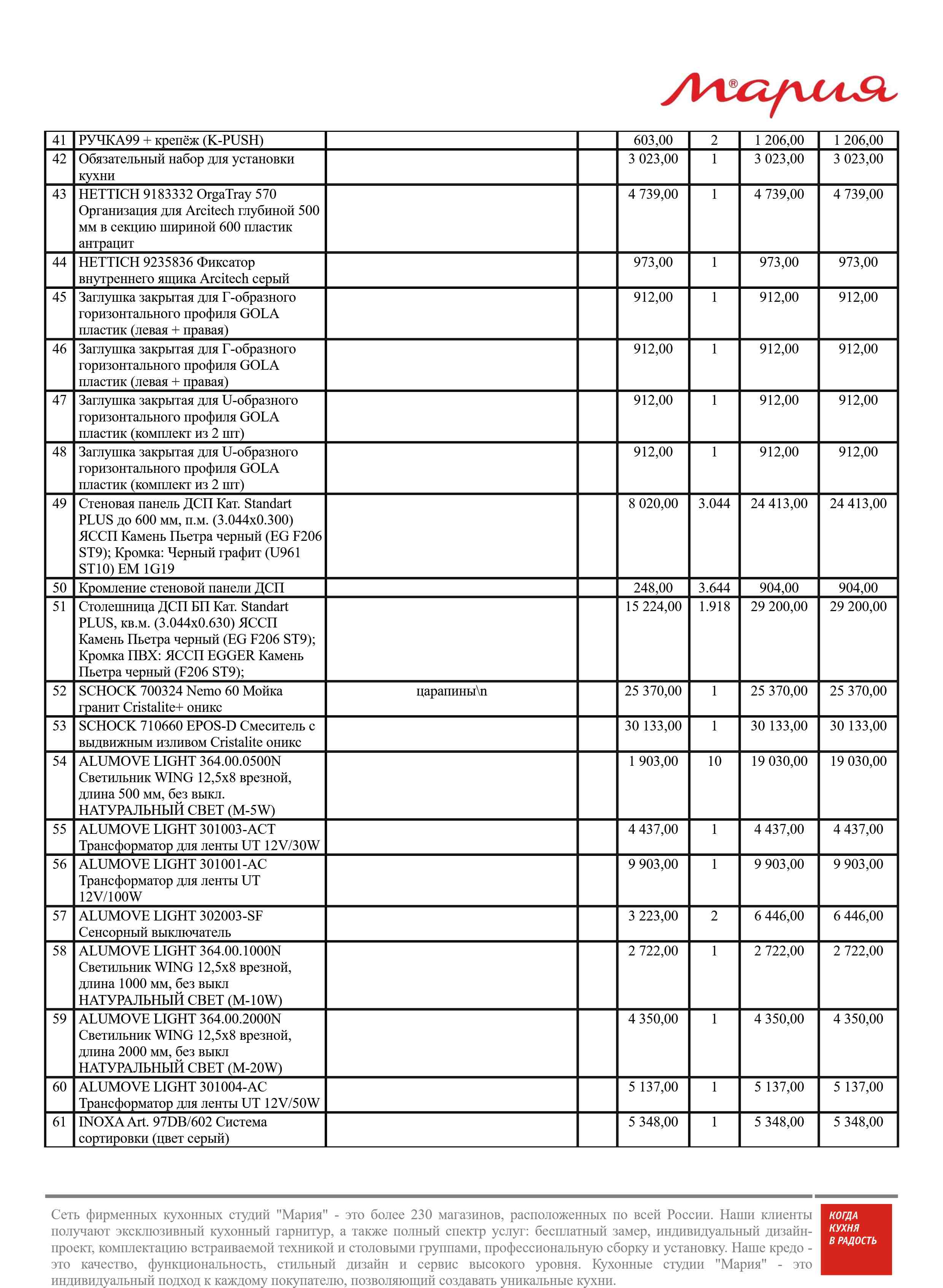 Стоимость данной кухни складывается из: