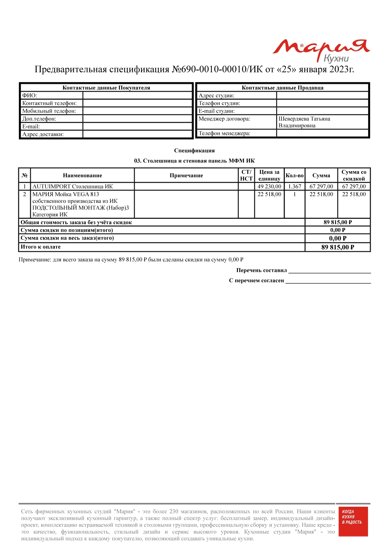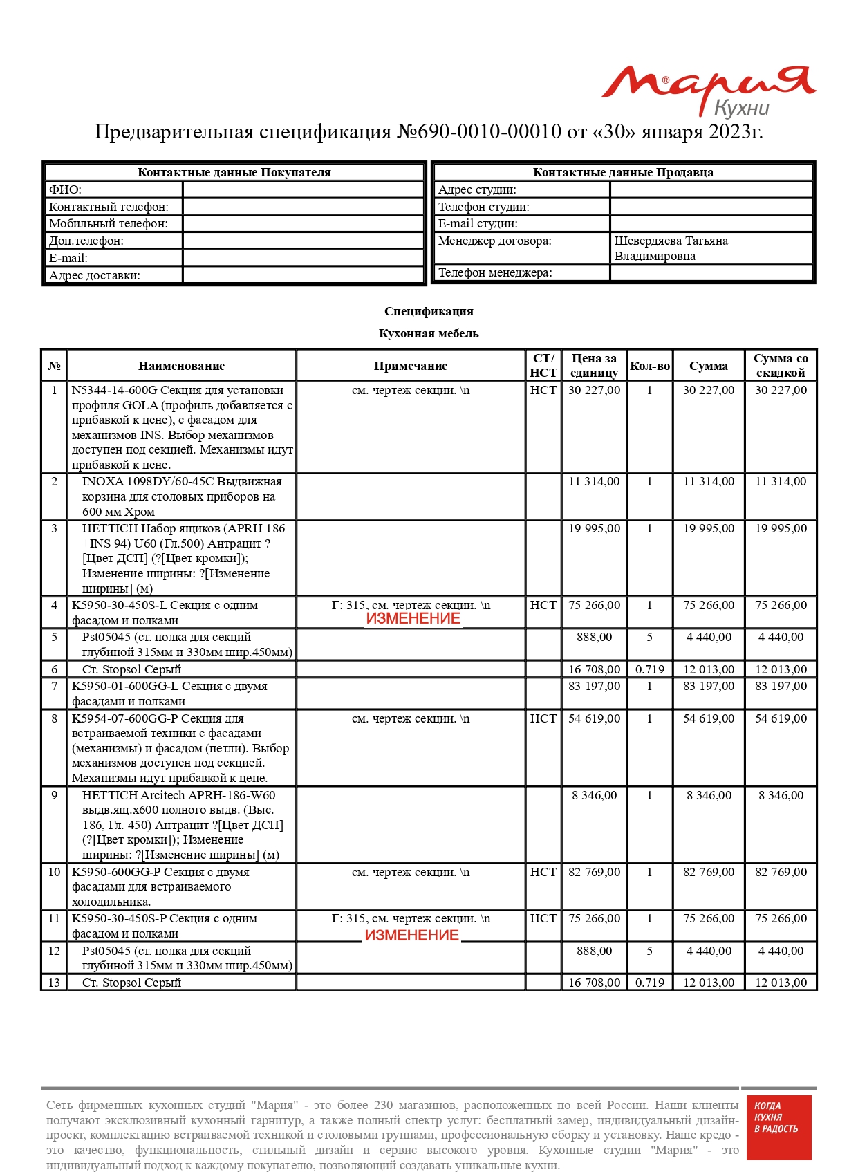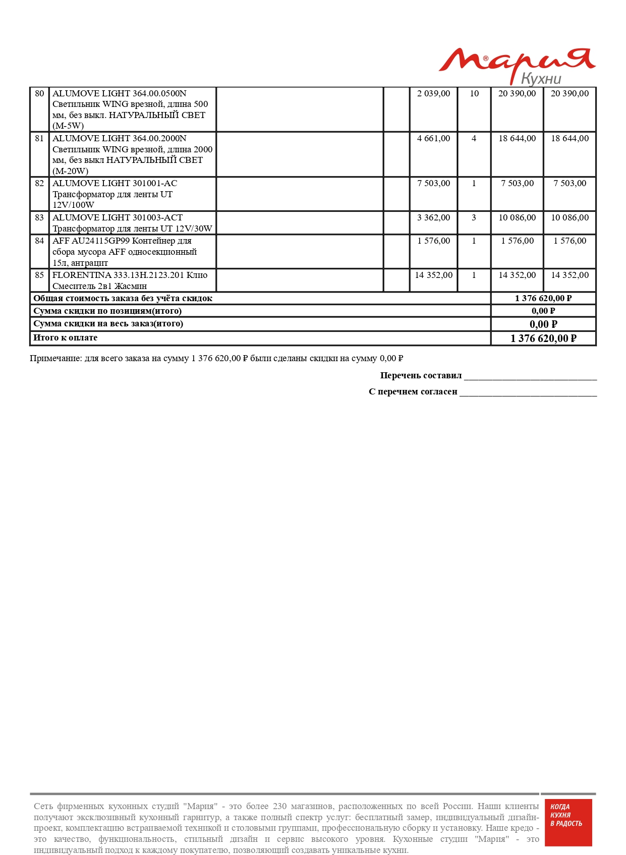 Стоимость данной кухни складывается из: